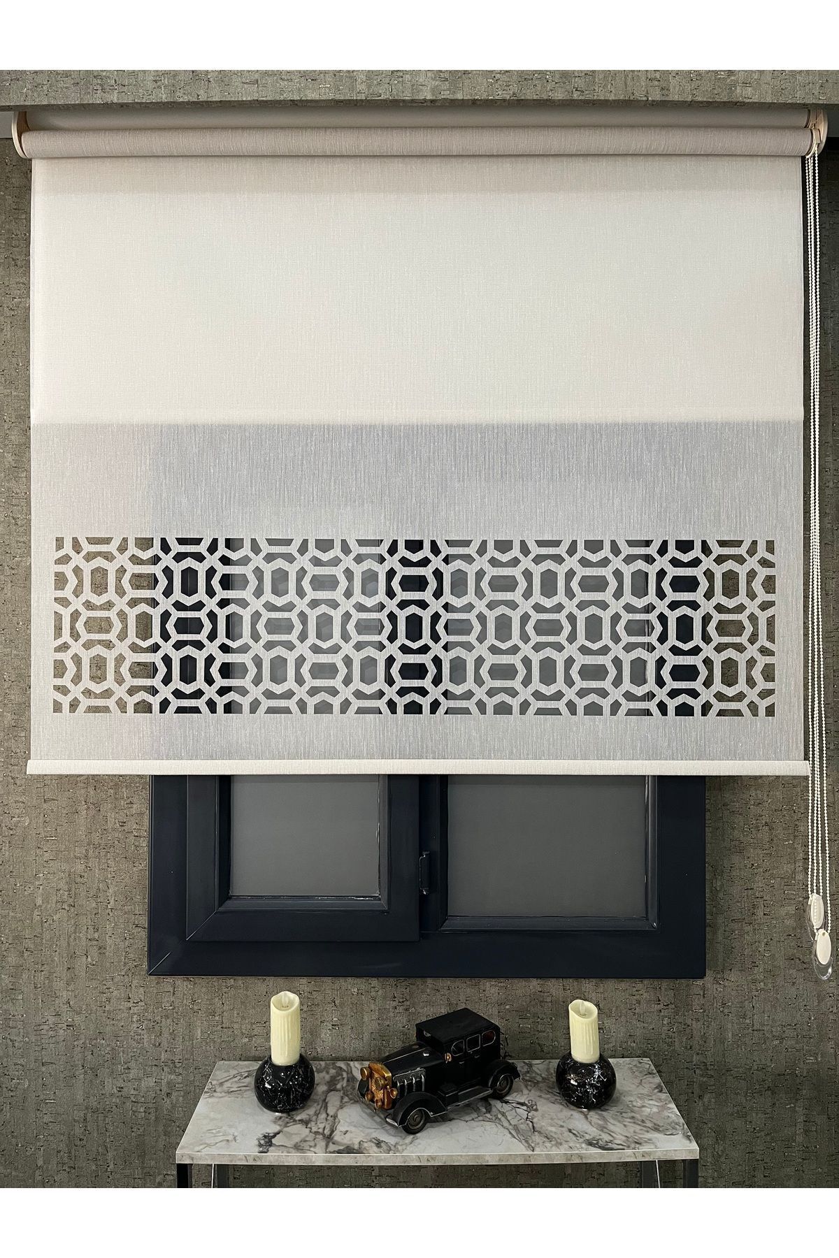 VP1020 Çift Mekanizmalı Lazer Kesim Tül ve Stor Perde Gri Renk VP1020 Çift Mekanizmalı Lazer Kesim Tül ve Stor Perde Gri Renk LZR1020 155 x 260