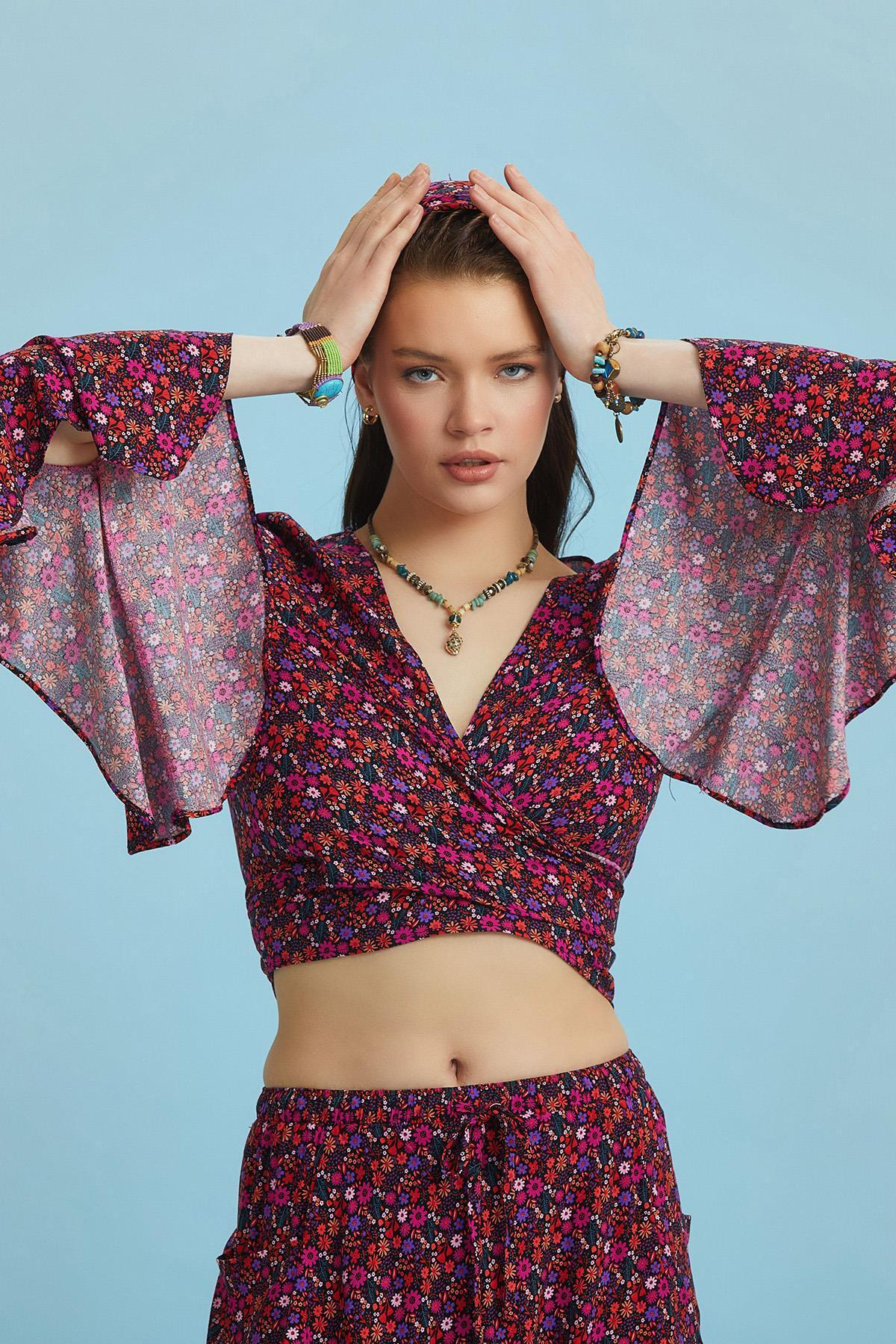 Çiçekli Desenli İspanyol Kol Crop Bluz Çiçekli Desenli İspanyol Kol Crop Bluz ULOS21SSBLOW.003_448 Standart