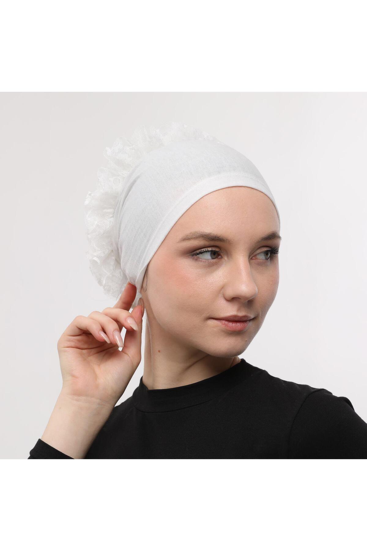 Önü Dikişli Arkadan Bağlamalı Topuz Dantelli Fırfırlı Tesettürİç Bone Önü Dikişli Arkadan Bağlamalı Topuz Dantelli Fırfırlı Tesettürİç Bone FRFBONE-30 Standart