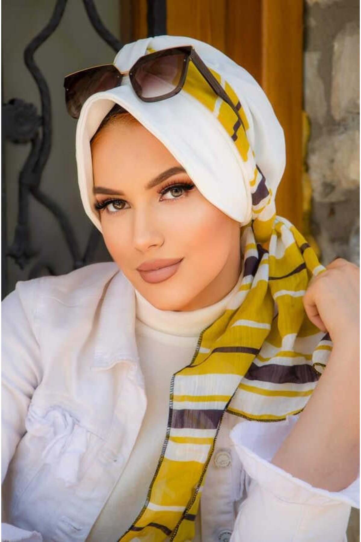 Lacivert Çizgili Desen Fularlı Şapka Bone Lacivert Çizgili Desen Fularlı Şapka Bone 30100 Standart