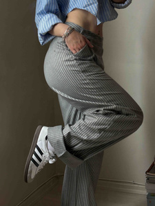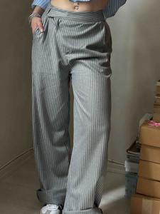 Palazzo Kesim Simli Çizgili Eden Pantolon Gri Palazzo Kesim Simli Çizgili Eden Pantolon Gri HLSS24-00011 L