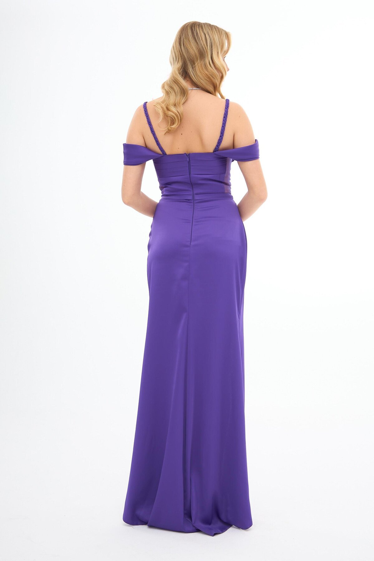 Mor Askılı Yırtmaçlı Saten Abiye Elbise Mor Askılı Yırtmaçlı Saten Abiye Elbise 58367 42