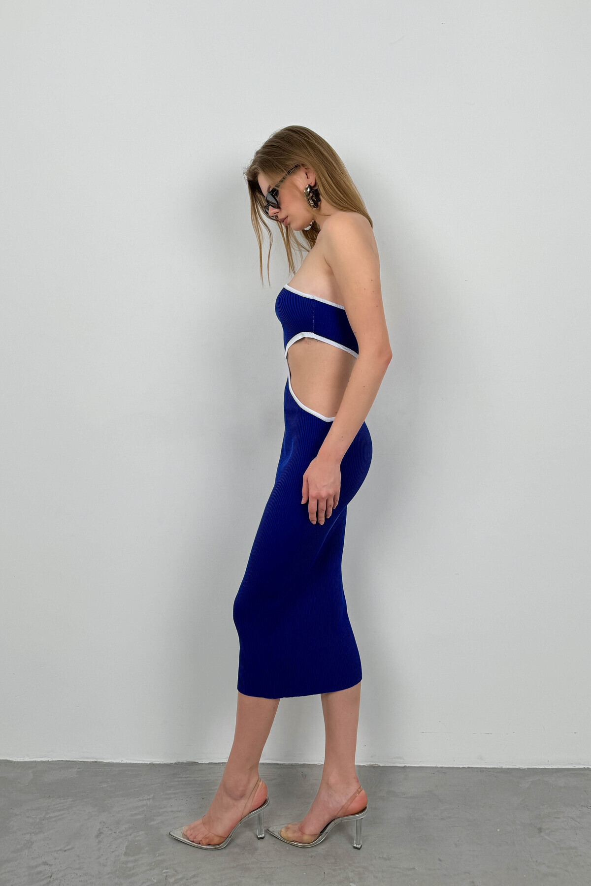 Tek Omuz Bel Dekolteli Saks Elbise Tek Omuz Bel Dekolteli Saks Elbise 23S25013 L