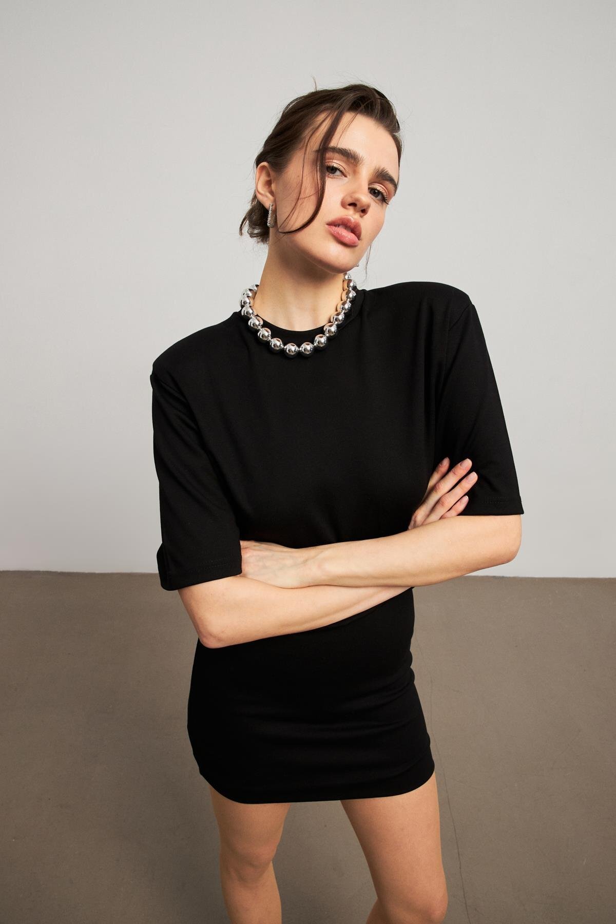 Bisiklet Yaka Vatkalı Beyaz Kadın Mini Elbise Bisiklet Yaka Vatkalı Beyaz Kadın Mini Elbise 23W05K00001 L