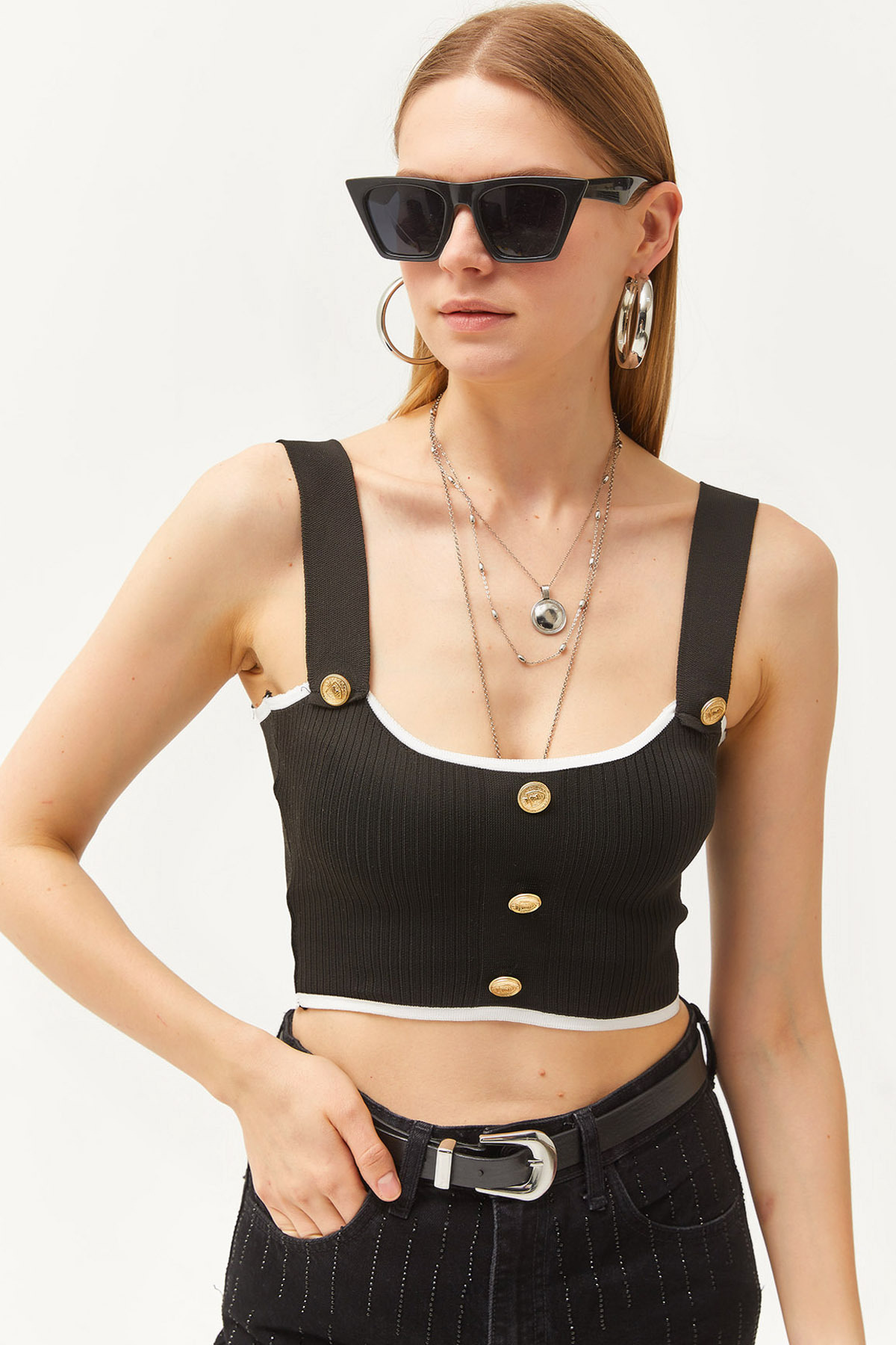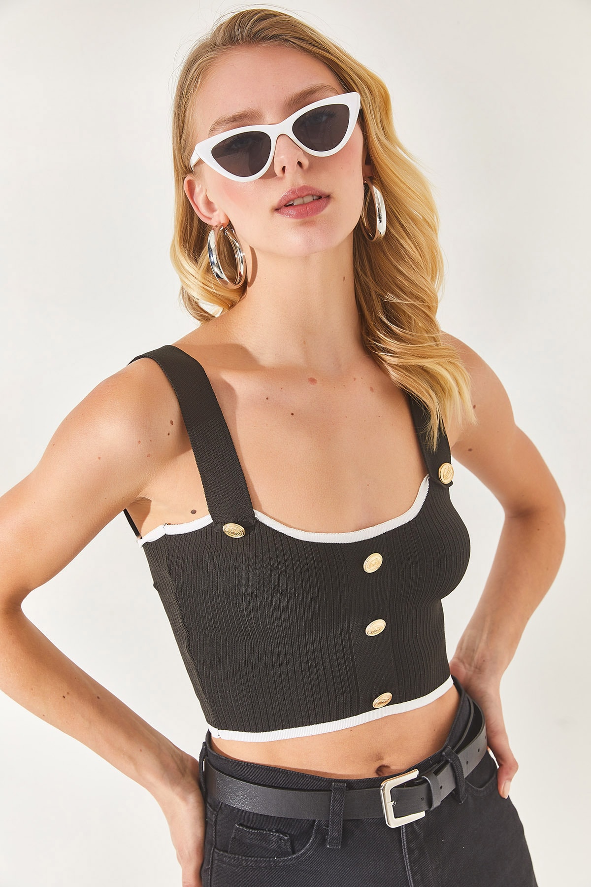 Kadın Ekru Düğme Detaylı Askılı Crop Triko Bluz BLZ-19002551 Kadın Ekru Düğme Detaylı Askılı Crop Triko Bluz BLZ-19002551 S/M