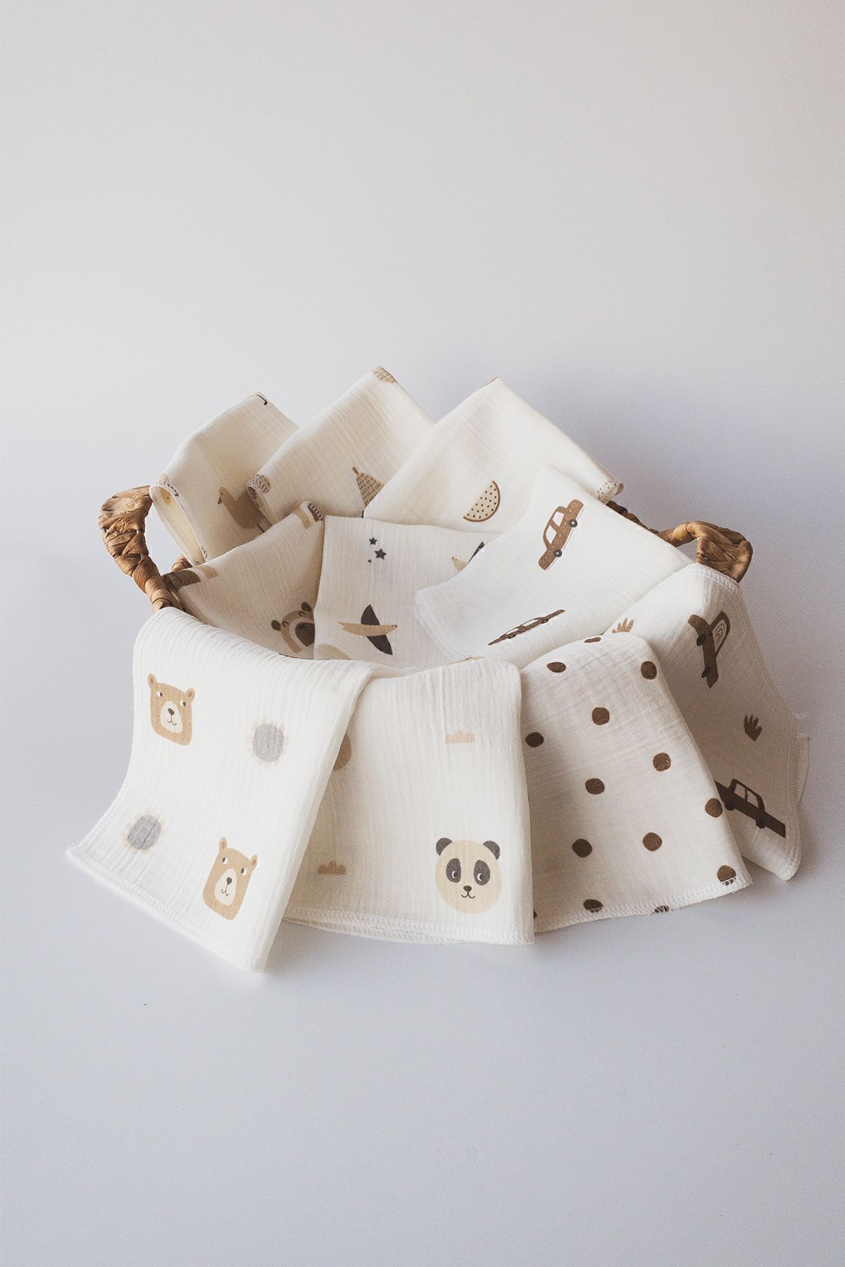 10'lu Desenli Müslin Bebek Ağız Mendili %100 Pamuk 25x25 Cm 10'lu Desenli Müslin Bebek Ağız Mendili %100 Pamuk 25x25 Cm CKS030 تک سایز