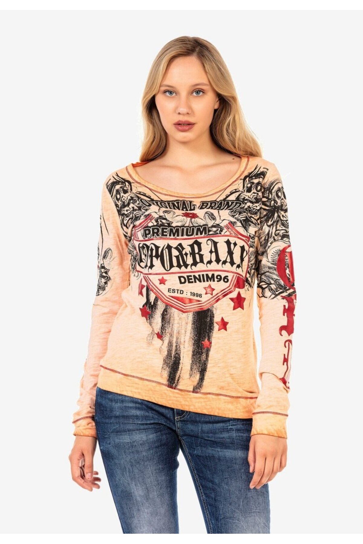WL284 Kadın Baskılı Uzun Kol Tişört WL284 Kadın Baskılı Uzun Kol Tişört XL