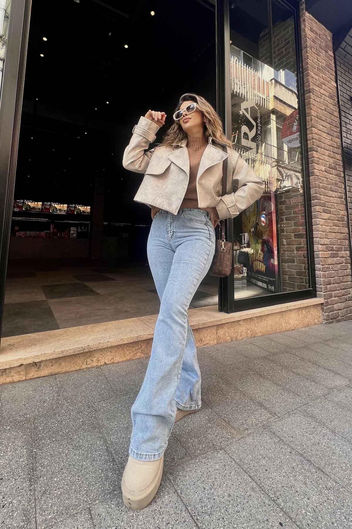 İspanyol Paça Jean Pantolon Buz Mavi İspanyol Paça Jean Pantolon Buz Mavi TYCA6CH87N170996302477535 42