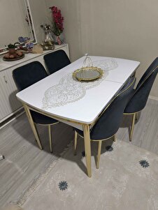 Pale Serisi 80x132 Açılabilir Beyaz Mutfak Masa Takımı 4 Antrasit Sandalye Gold Detay Pale Serisi 80x132 Açılabilir Beyaz Mutfak Masa Takımı 4 Antrasit Sandalye Gold Detay 22PALE04BYZ04GLD تک سایز