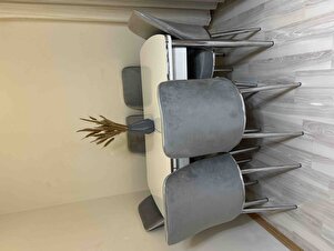 Pale Serisi 80x132 Açılabilir Beyaz Mutfak Masa Takımı 6 Gri Sandalye Krom Detay Pale Serisi 80x132 Açılabilir Beyaz Mutfak Masa Takımı 6 Gri Sandalye Krom Detay 22PALE06BYZ06KRM06 تک سایز