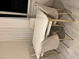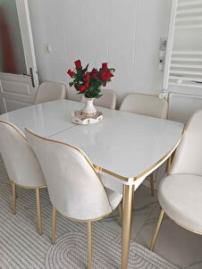 Pale Serisi 80x132 Açılabilir Beyaz Mutfak Masa Takımı 6 Krem Sandalye Gold Detay Pale Serisi 80x132 Açılabilir Beyaz Mutfak Masa Takımı 6 Krem Sandalye Gold Detay TYC36TZJ8N170996534123696 تک سایز
