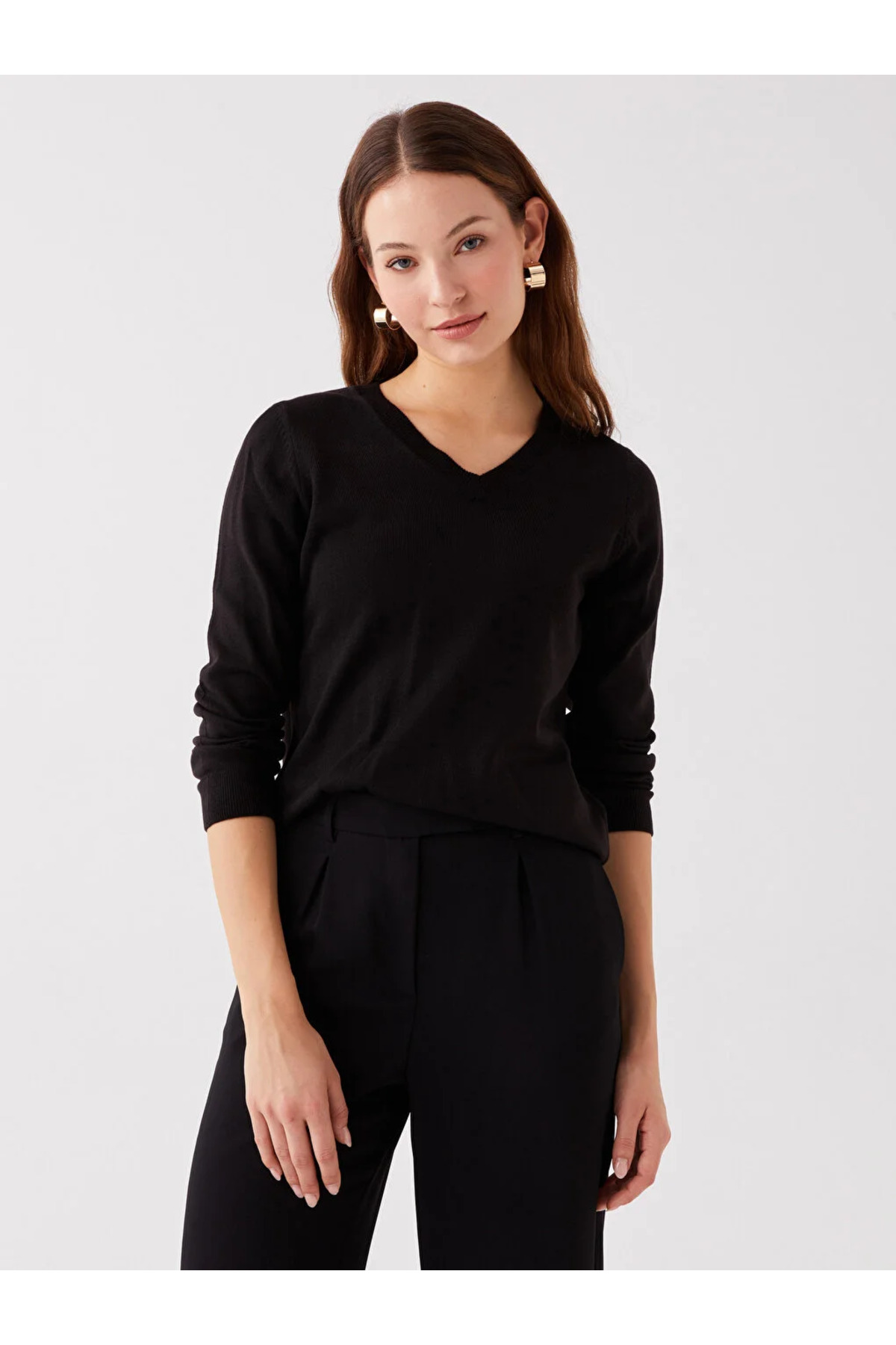 LCWAIKIKI Basic V Yaka Düz Uzun Kollu Kadın Triko Kazak LCWAIKIKI Basic V Yaka Düz Uzun Kollu Kadın Triko Kazak W33064Z8 L