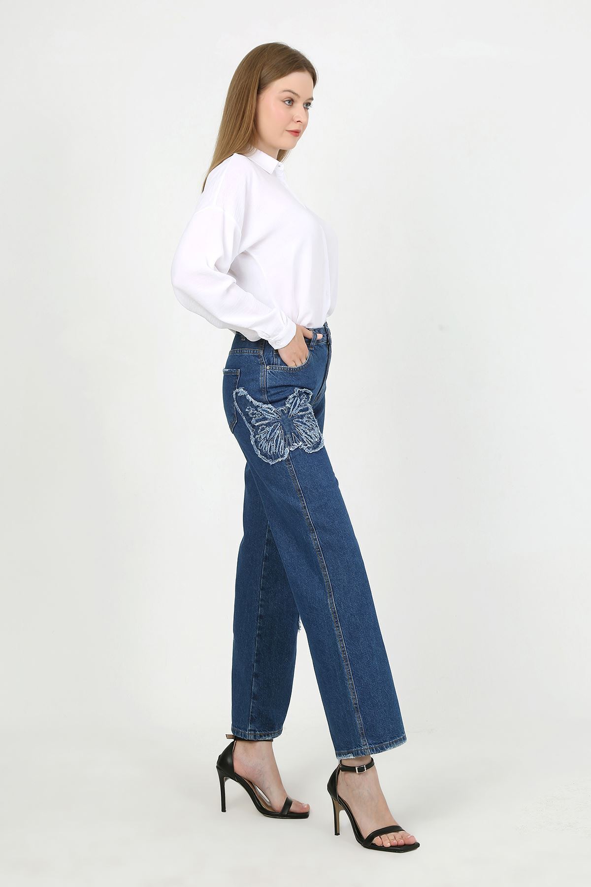 Kelebek Nakışlı Pantolon Koyu Mavi- Kelebek Nakışlı Pantolon Koyu Mavi- PN00017 42