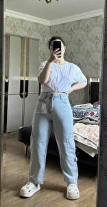 Kargo Kot Pantolon Straight Jean Yüksek Bel Düz Paça Cepli Pamuklu - Eve Jean Kargo Kot Pantolon Straight Jean Yüksek Bel Düz Paça Cepli Pamuklu - Eve Jean 4SAL40011MD 27-32