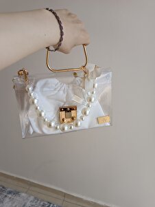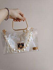 İnci Askılı Beyaz Şeffaf Çanta İnci Askılı Beyaz Şeffaf Çanta ARV020324 Standart