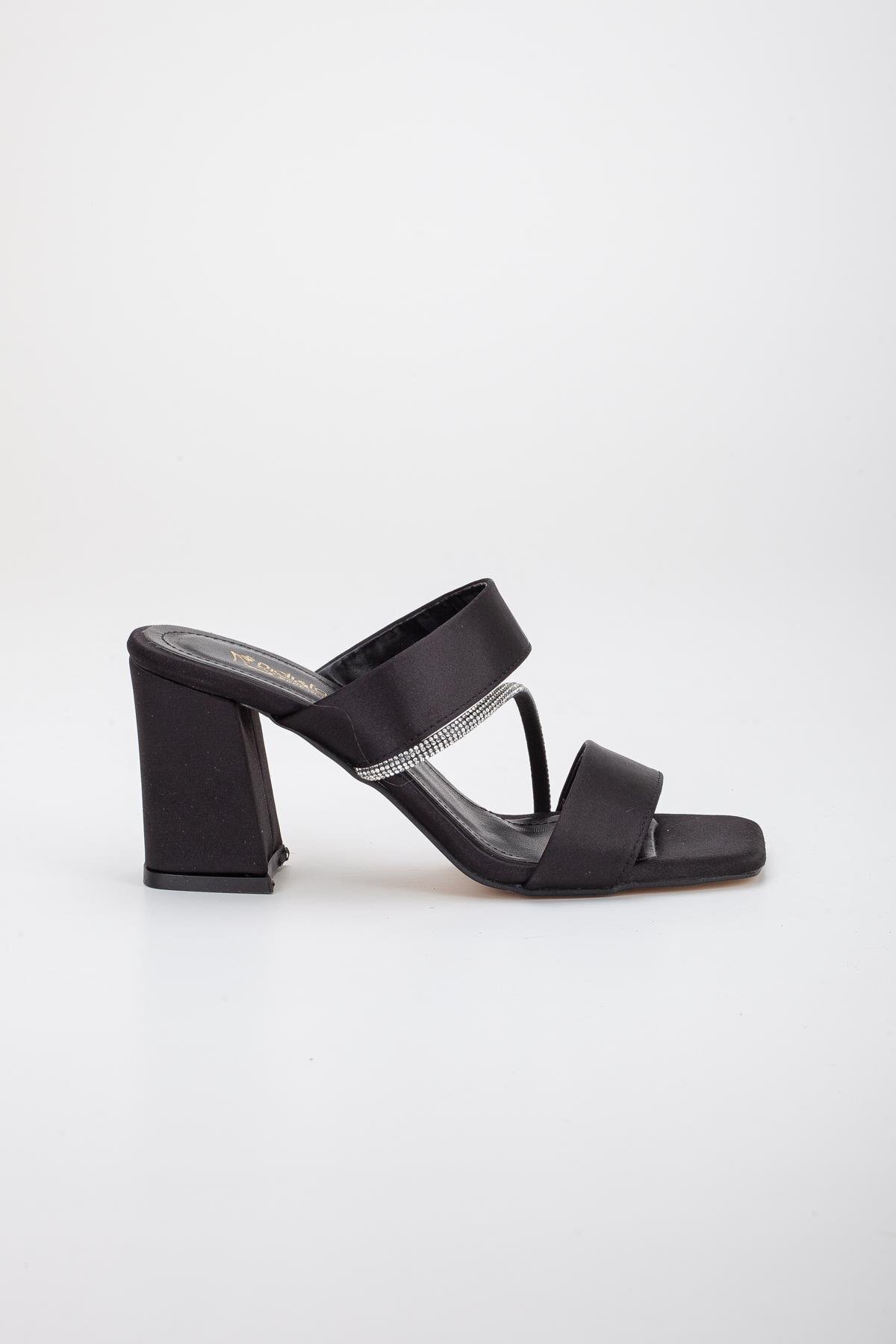 Saten İki Bantlı Çapraz Şerit Taşlı Siyah Kadın Topuklu Terlik Saten İki Bantlı Çapraz Şerit Taşlı Siyah Kadın Topuklu Terlik 010-8029-SATEN 40