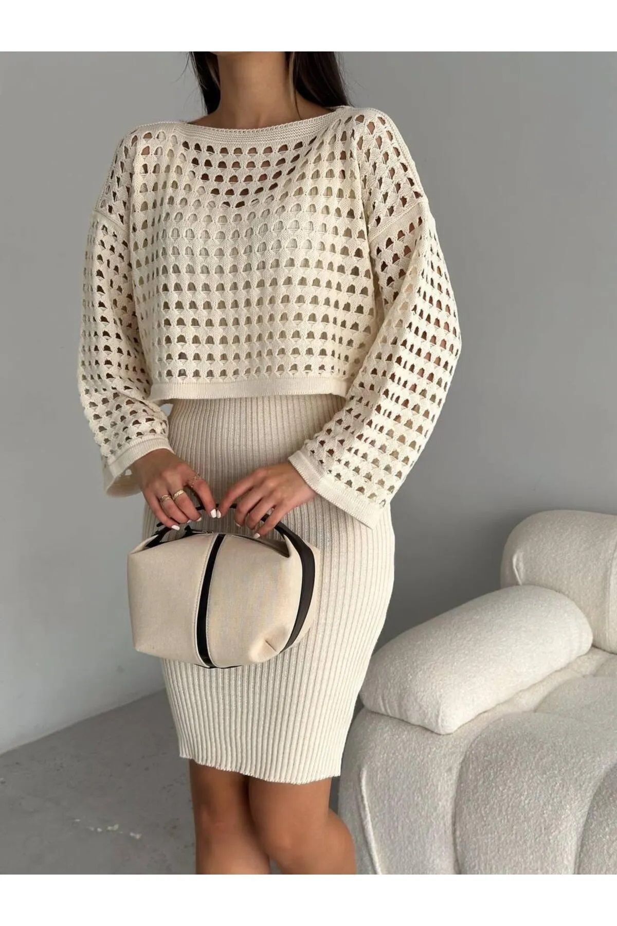 Triko Delikli Kazak Elbise Takım Triko Delikli Kazak Elbise Takım Lady MORE-16 Standart
