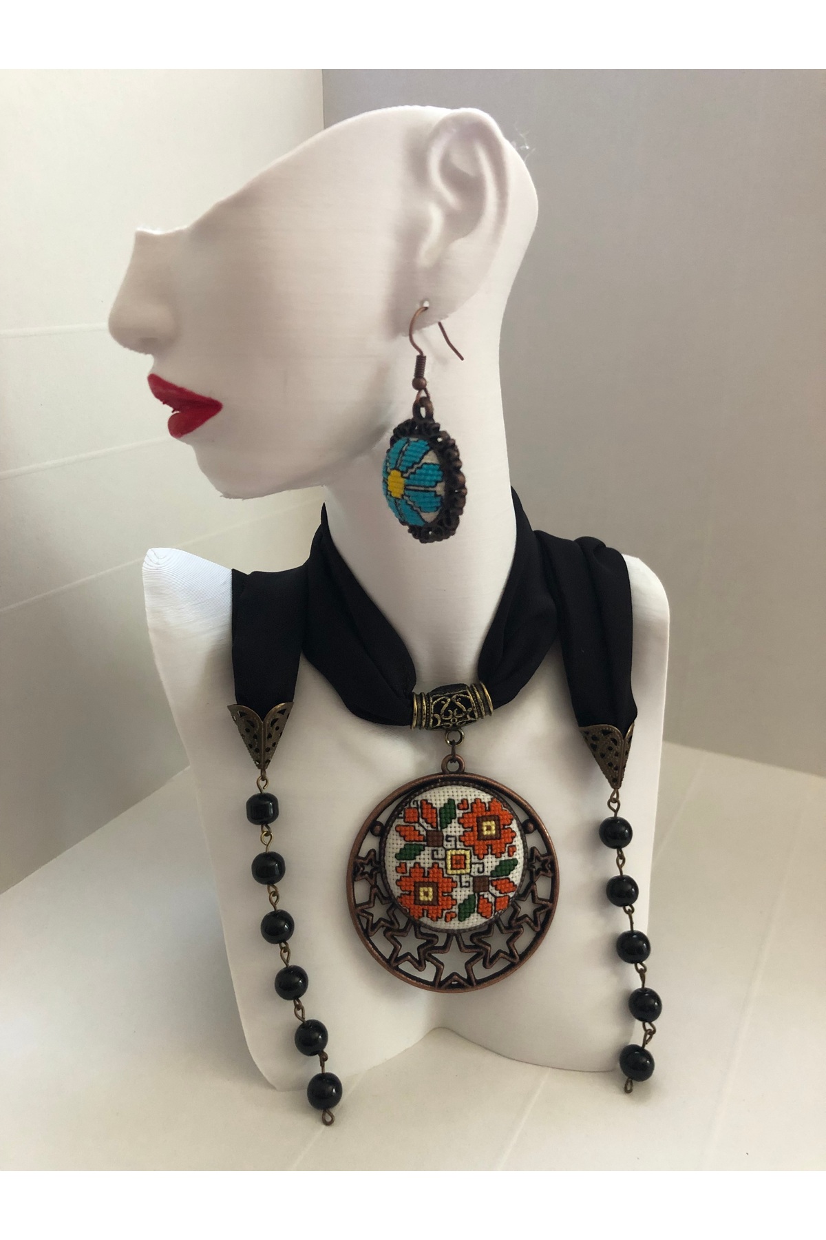 Kadın Yaprak Aparatlı Uğur Böceği Işlemeli Kanaviçe Kolye Kadın Yaprak Aparatlı Uğur Böceği Işlemeli Kanaviçe Kolye AKO37 تک سایز