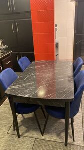 Via Serisi 80x132 Açılabilir Mutfak Masası Takımı Siyah Mermer Desen Masa 4 Lacivert Sandalye Via Serisi 80x132 Açılabilir Mutfak Masası Takımı Siyah Mermer Desen Masa 4 Lacivert Sandalye CNSVİASYH تک سایز