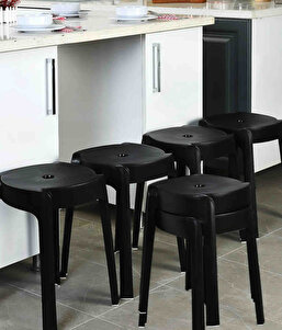 Kaymaz Ayaklı Dekoratif İç İçe Geçebilen Plastik Tabure Mutfak Bahçe Taburesi 6 Adet Siyah Kaymaz Ayaklı Dekoratif İç İçe Geçebilen Plastik Tabure Mutfak Bahçe Taburesi 6 Adet Siyah SOLO6SET تک سایز