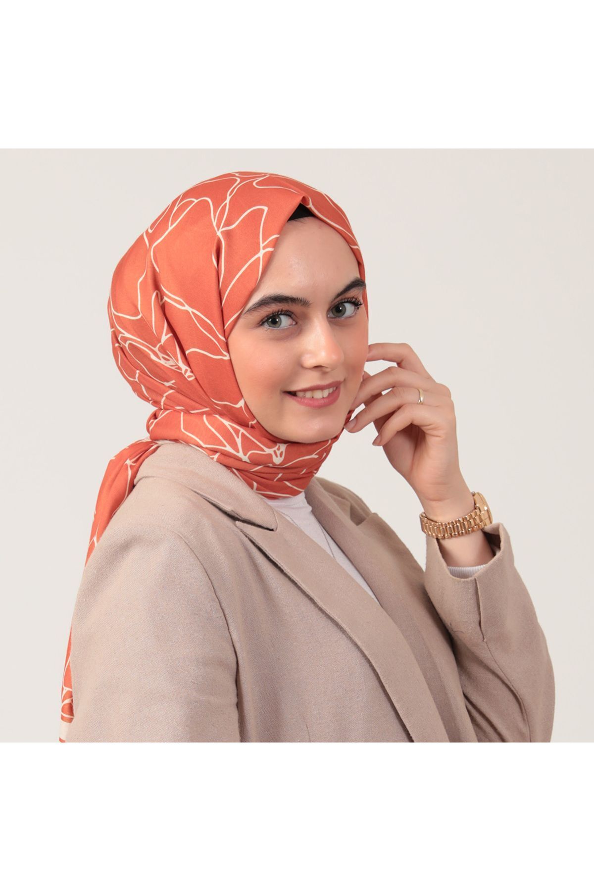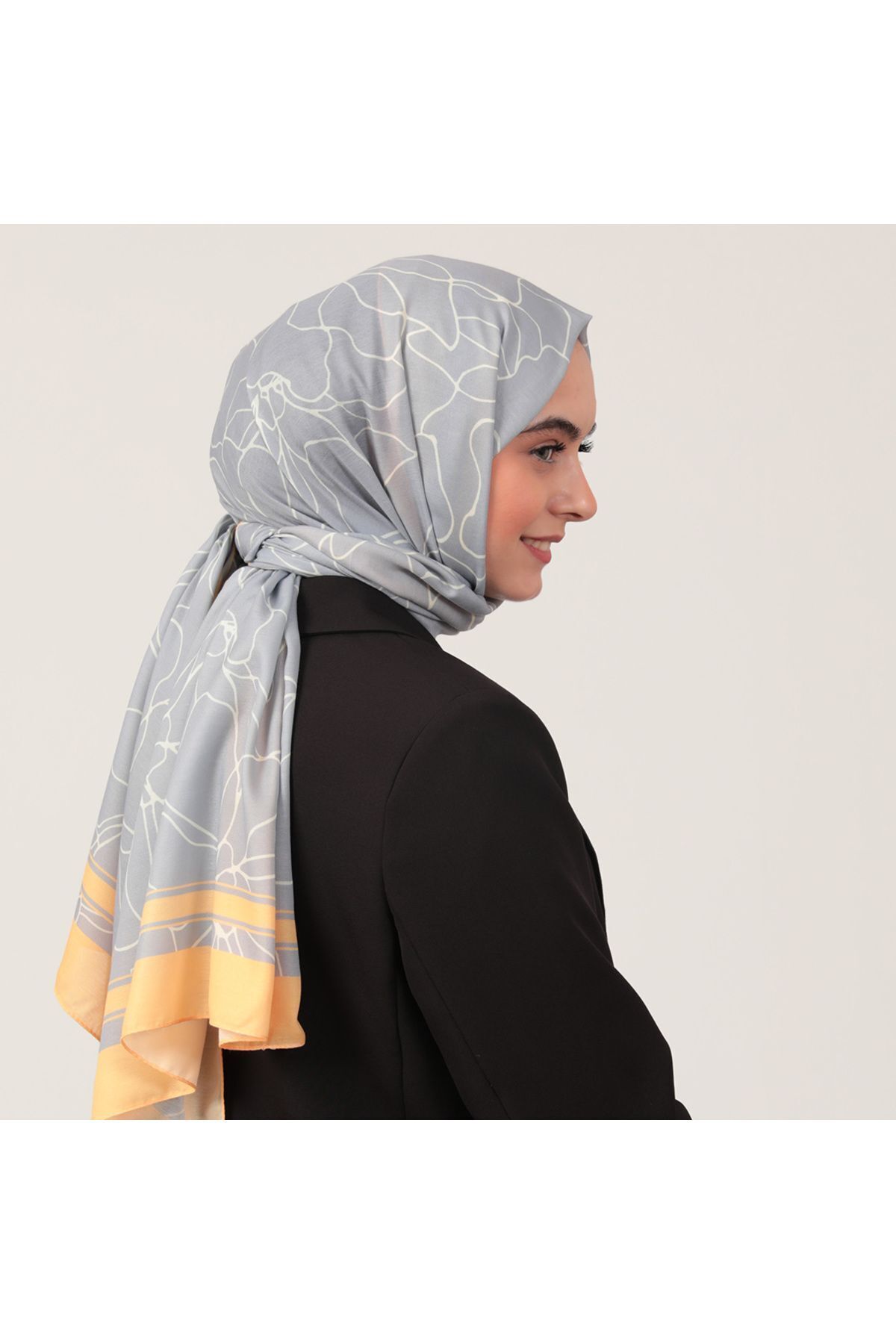 Pamuk İpek Şal - Gelincik Desen - Sarı Pamuk İpek Şal - Gelincik Desen - Sarı 12079 70 x 200