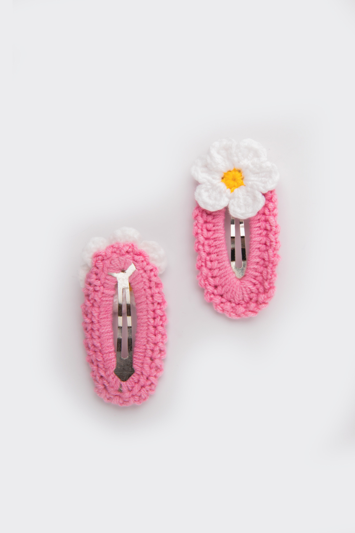 Pembe Örgü Çiçek 2'li Toka Set Pembe Örgü Çiçek 2'li Toka Set LM652 تک سایز
