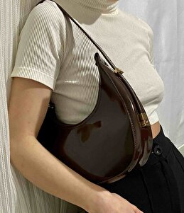 Kadın Rugan Deri Parlak Kahverengi Baget Bag Fermuar Kapamalı Özel Askı Detaylı Kol Çantası Kadın Rugan Deri Parlak Kahverengi Baget Bag Fermuar Kapamalı Özel Askı Detaylı Kol Çantası BLOOMBELLE 22
