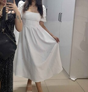 Beyaz Kare Yaka Pileli Midi Boy Elbise Beyaz Kare Yaka Pileli Midi Boy Elbise AFŞ-BEKREP L