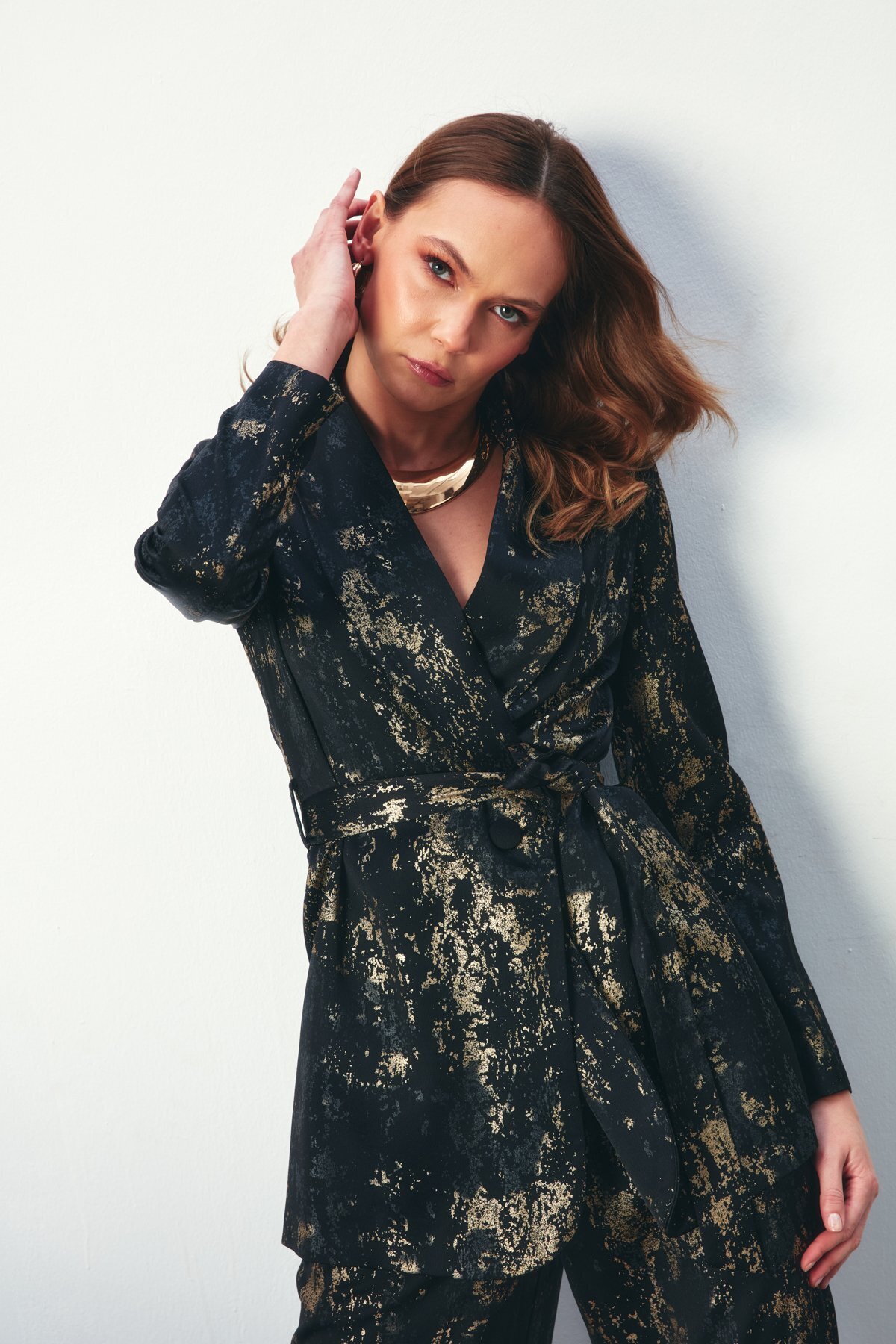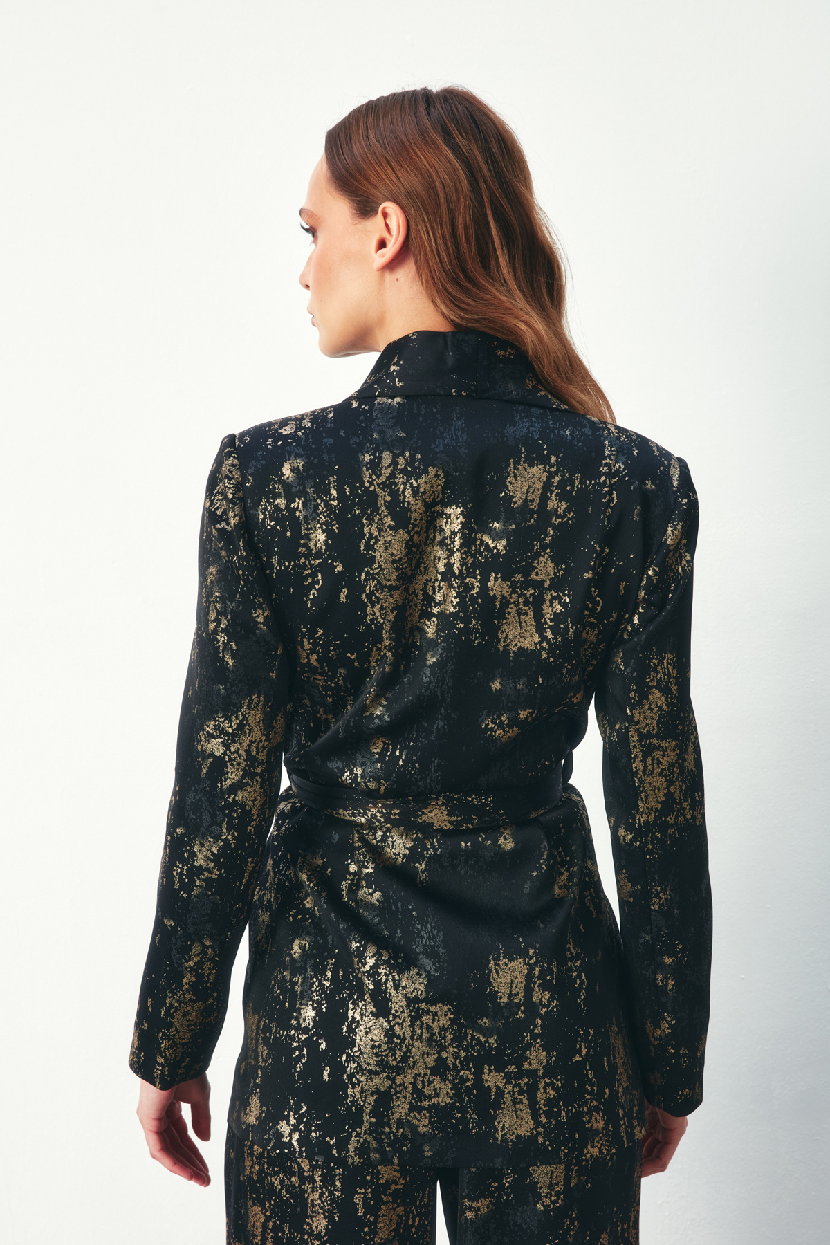 Parlak Desenli Kuşaklı Uzun Ceket - SİYAH Parlak Desenli Kuşaklı Uzun Ceket - SİYAH STN139KCE1398 42