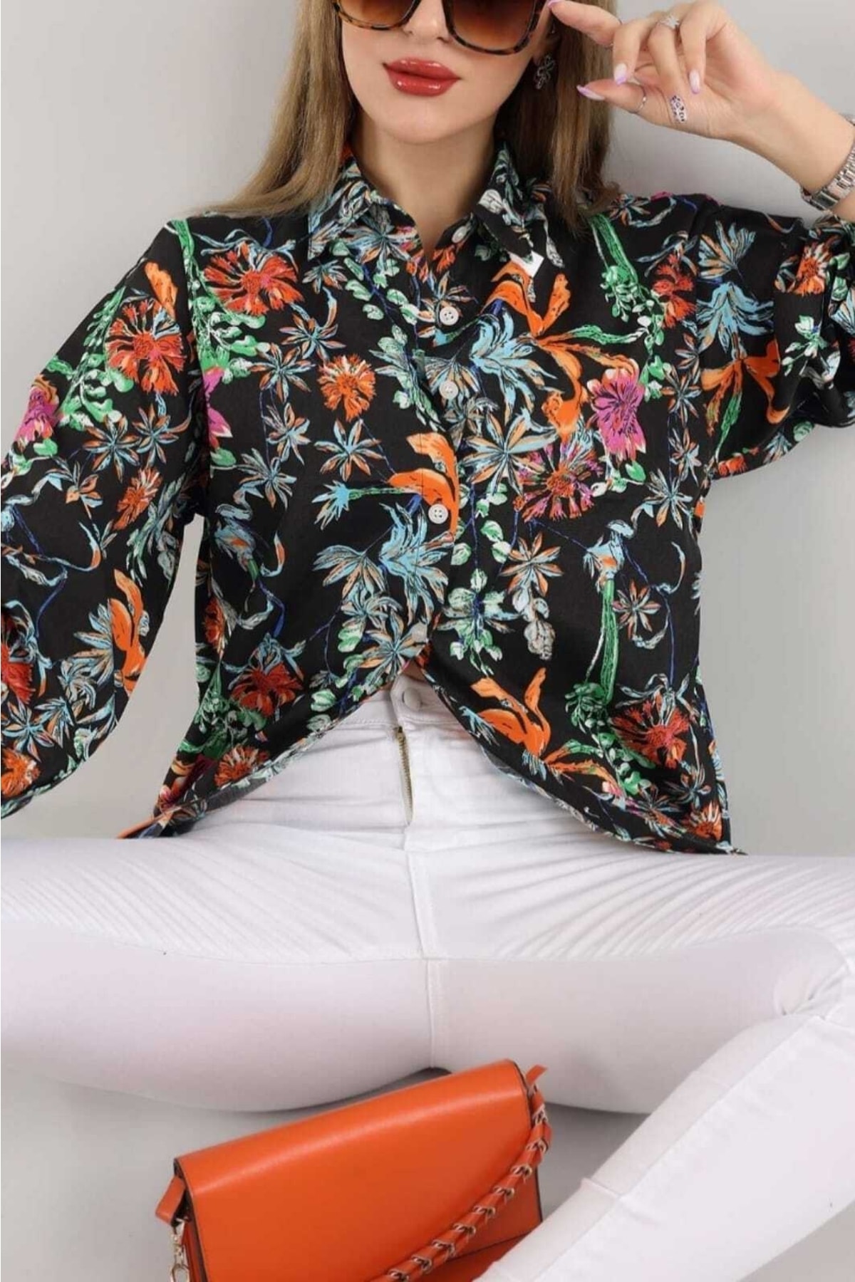 Kadın Siyah Desenli Dokuma Viskon Gömlek ALC-X11860 Kadın Siyah Desenli Dokuma Viskon Gömlek ALC-X11860 L