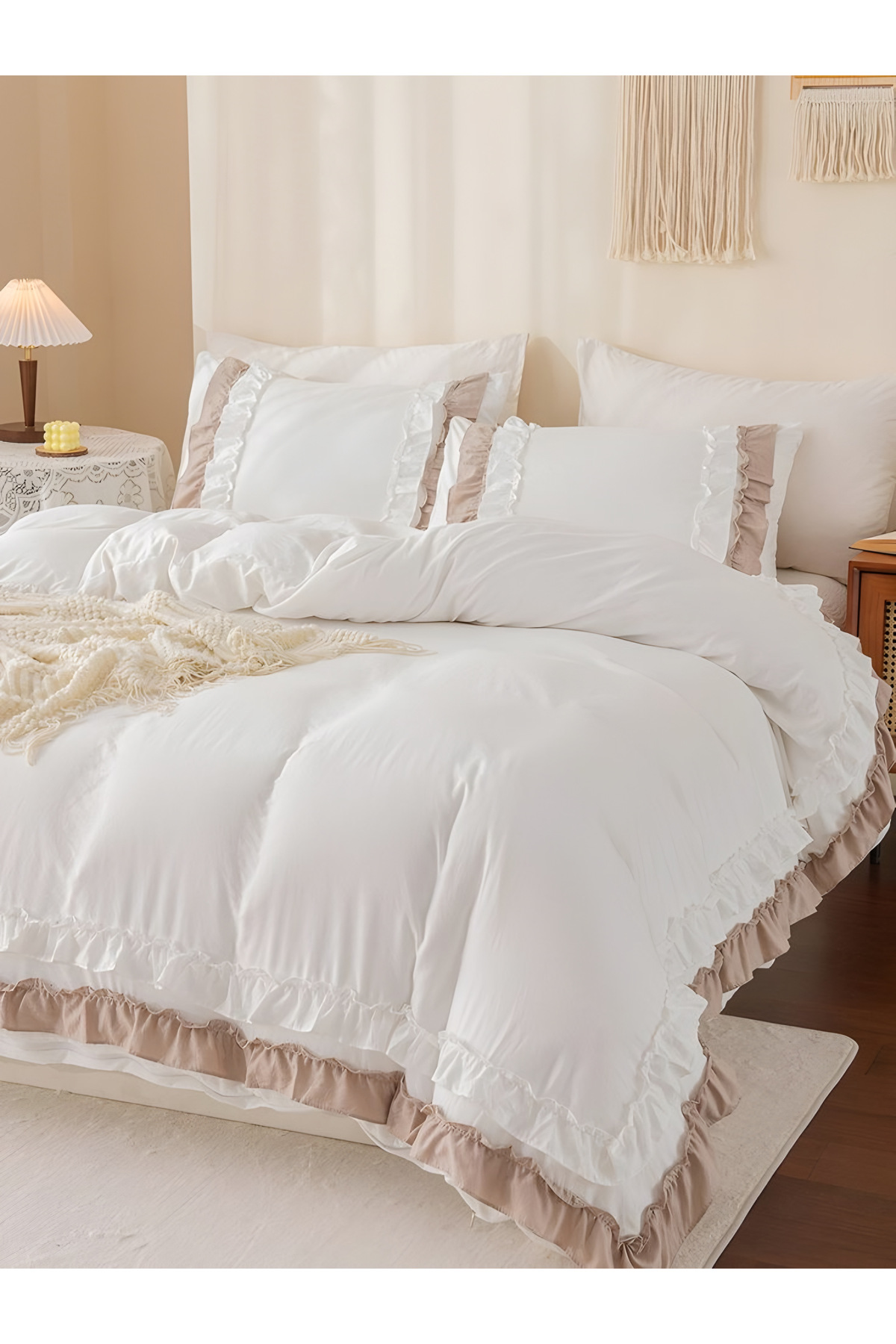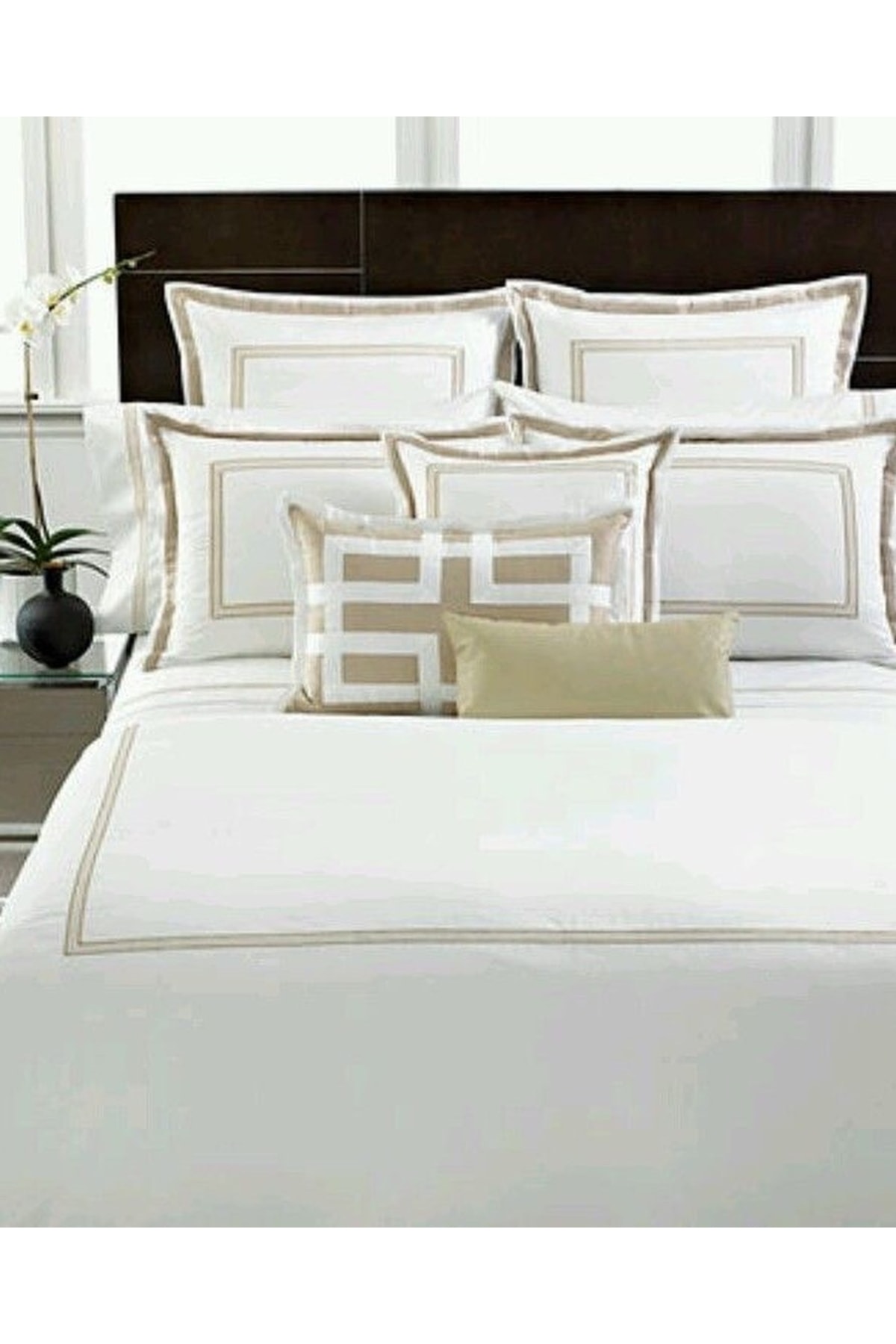 Bej dekoratifli ve köşeli beyaz pamuk saten nevresim takımı Bej dekoratifli ve köşeli beyaz pamuk saten nevresim takımı DS54300 تک سایز