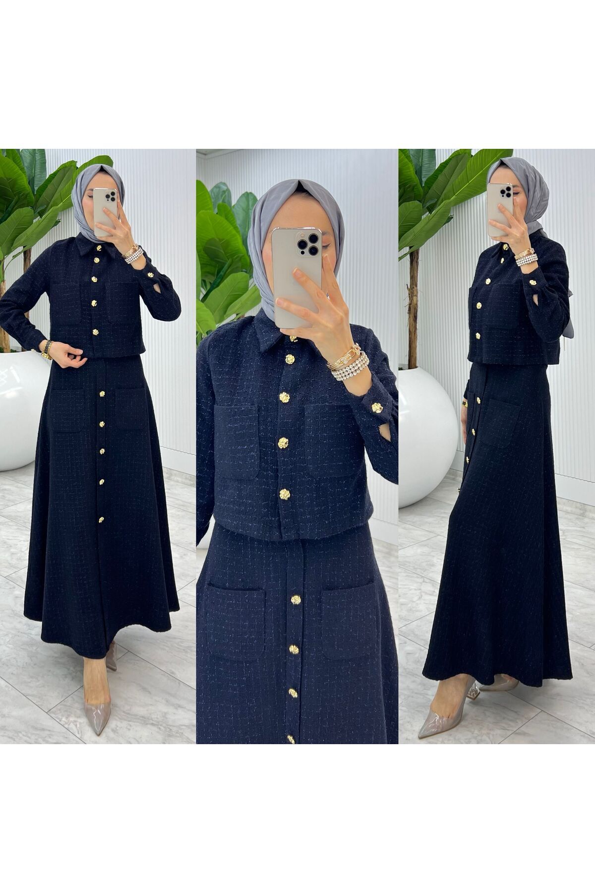 Premium Dubai Krep Kumaş İç Elbise ve Dış Kap İkili Kadın Takım Premium Dubai Krep Kumaş İç Elbise ve Dış Kap İkili Kadın Takım frst151d 42