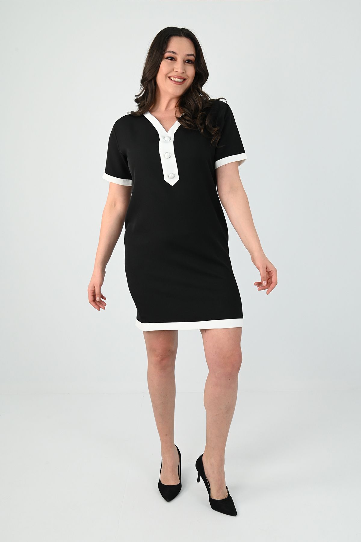 Kadın Büyük Beden Kısa Kollu Yaka Detaylı Elbise 5213-24 Kadın Büyük Beden Kısa Kollu Yaka Detaylı Elbise 5213-24 ADR-5213W024ELB1 5XL