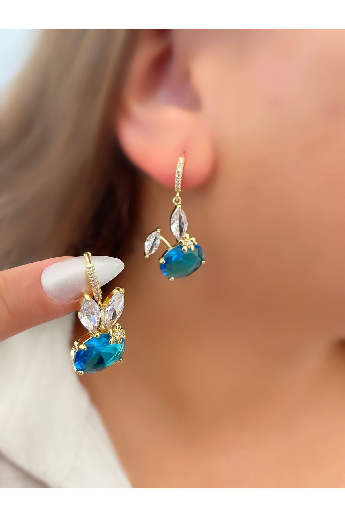 Kalp Taşlı Küpe - Mavi Kalp Taşlı Küpe - Mavi ERSM0364 0