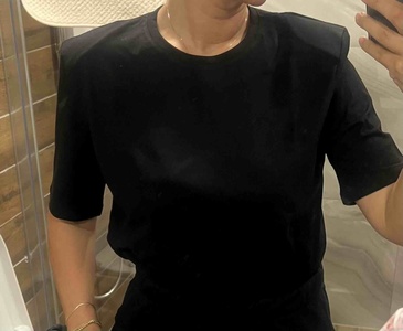 Vatkalı Siyah T-shirt, Omzu Vatkalı Kadın T-shirt, Pamuklu Penye T-shirt Vatkalı Siyah T-shirt, Omzu Vatkalı Kadın T-shirt, Pamuklu Penye T-shirt poupee4566 3XL