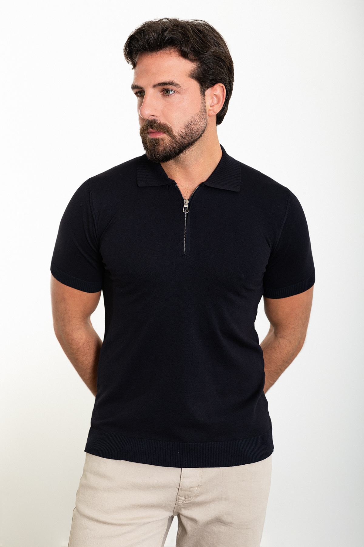 Düz Slim Fit Fermuarlı Polo Yaka Erkek Triko T-Shirt Lacivert - 11471.24Y Düz Slim Fit Fermuarlı Polo Yaka Erkek Triko T-Shirt Lacivert - 11471.24Y 2XL