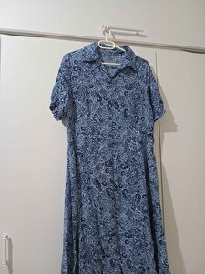 Mavi Kısa Kol Kuşaklı Dokuma Midi Gömlek Elbise Mavi Kısa Kol Kuşaklı Dokuma Midi Gömlek Elbise SD/MYAZ24ELB0528 44
