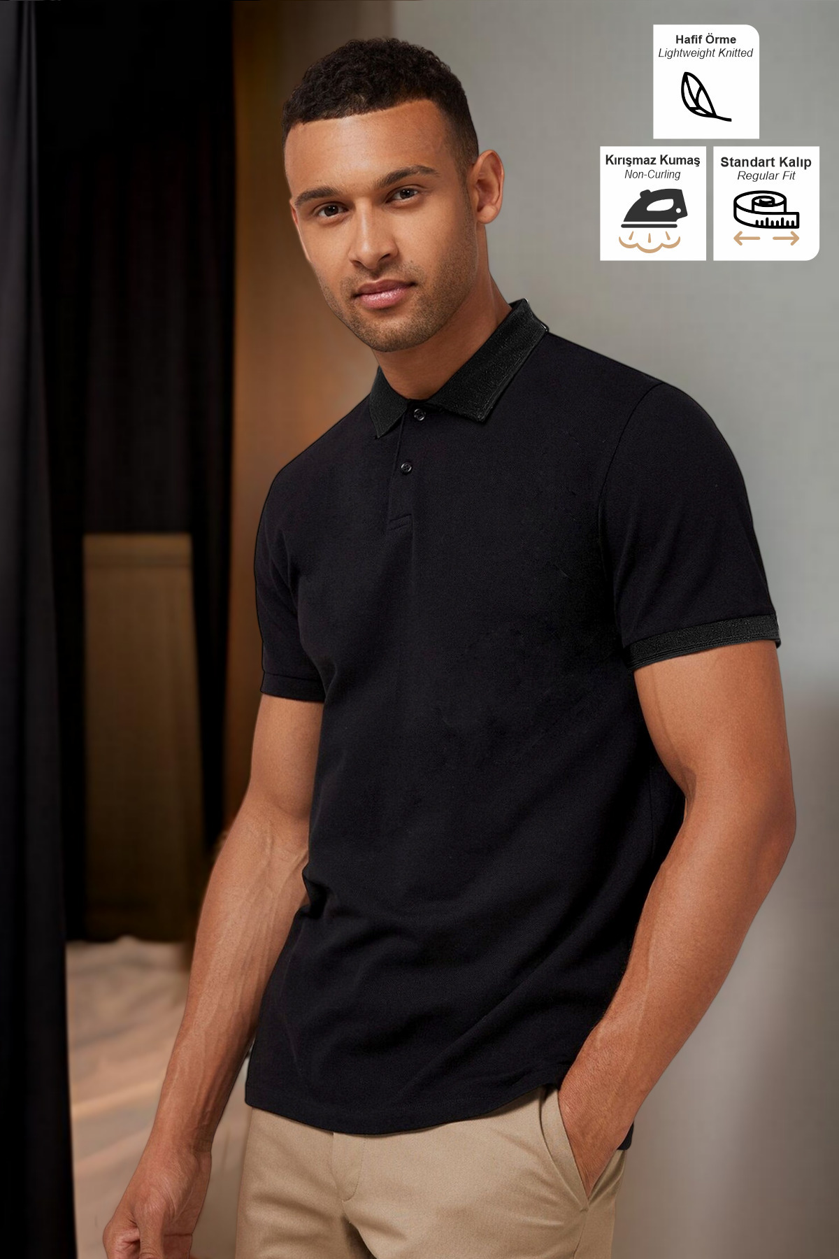 Polo Yaka Tişört Minimal Baskılı Düğmeli Kısa Kollu Polo Yaka Tişört Minimal Baskılı Düğmeli Kısa Kollu 4SAM10163MK 2XL