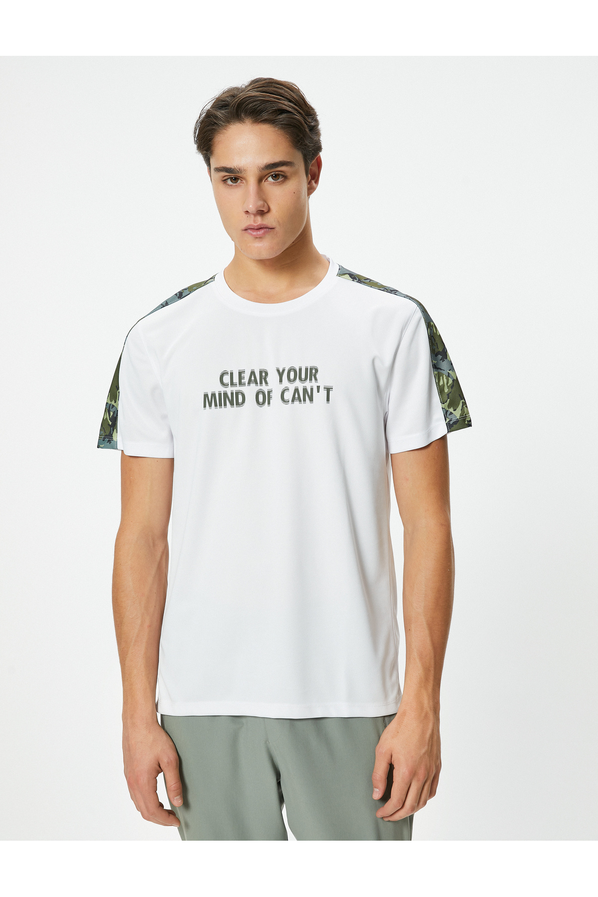 Spor Tişört Slogan Baskılı Bisiklet Yaka Kamuflaj Detaylı Spor Tişört Slogan Baskılı Bisiklet Yaka Kamuflaj Detaylı 4WAM10089NK 2XL