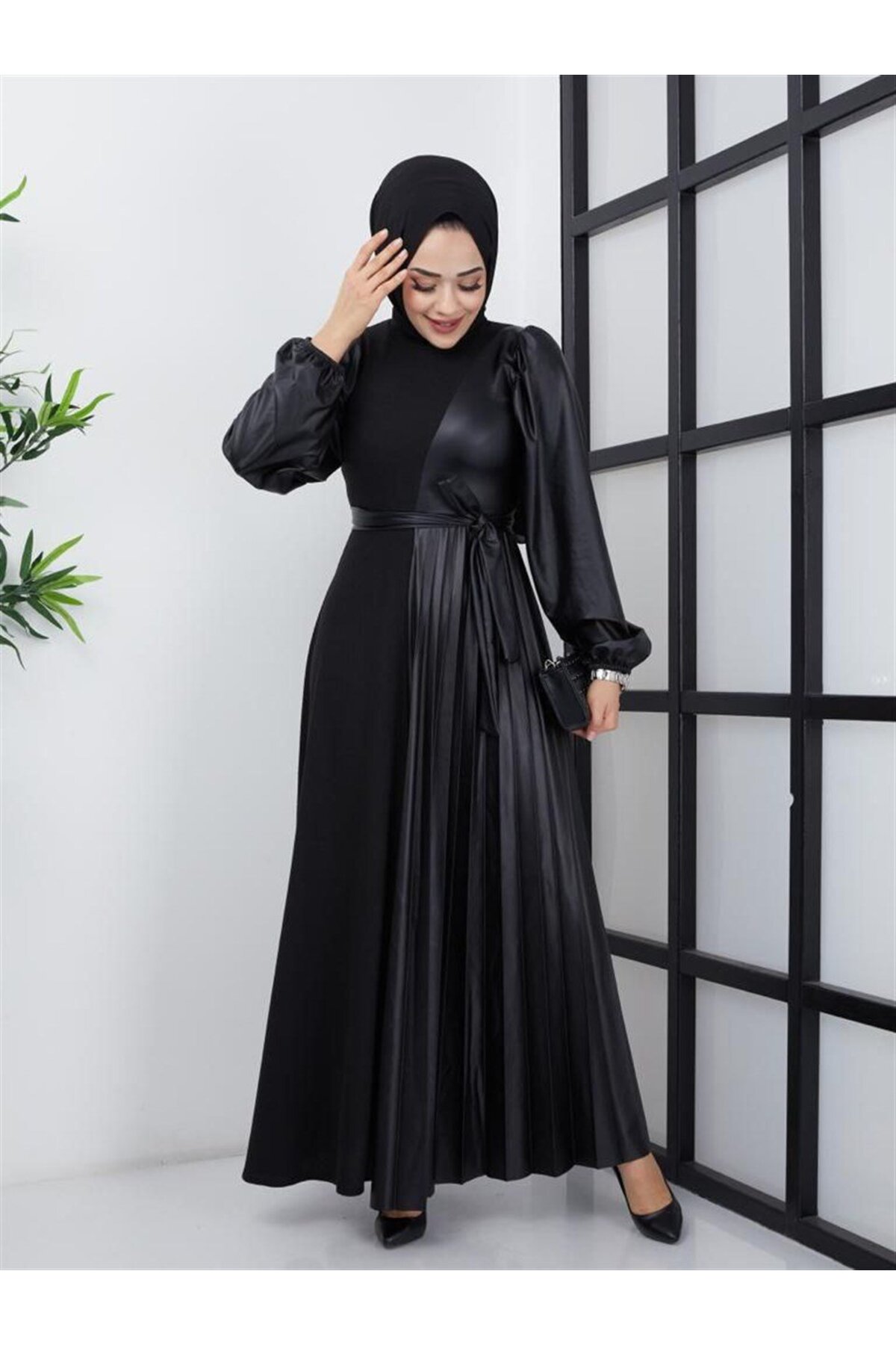 KALIN KREP KUMAŞ VİZON ELBİSE KALIN KREP KUMAŞ VİZON ELBİSE تک سایز