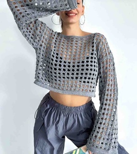 İspanyol Kol Delikli Crop GRİ İspanyol Kol Delikli Crop GRİ AJURLU GRİ CROP L