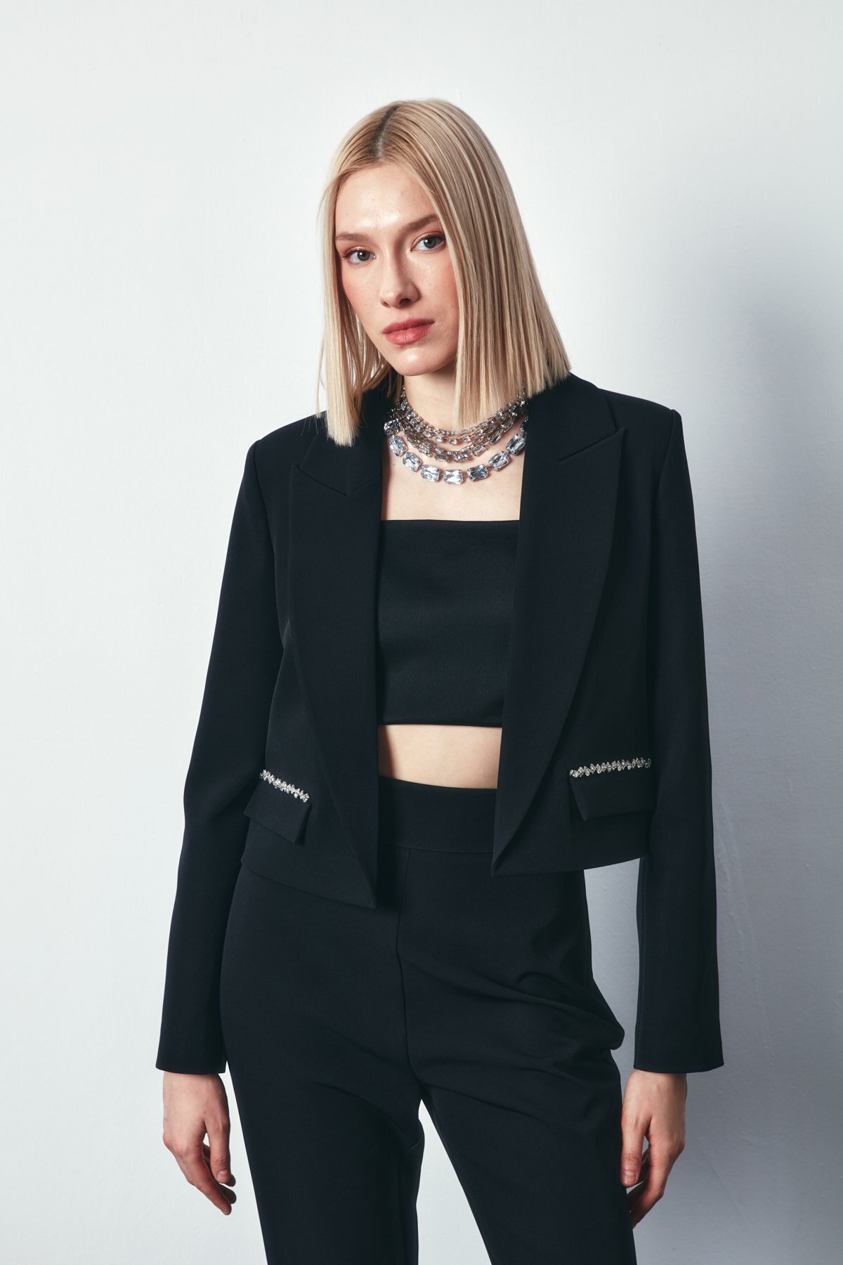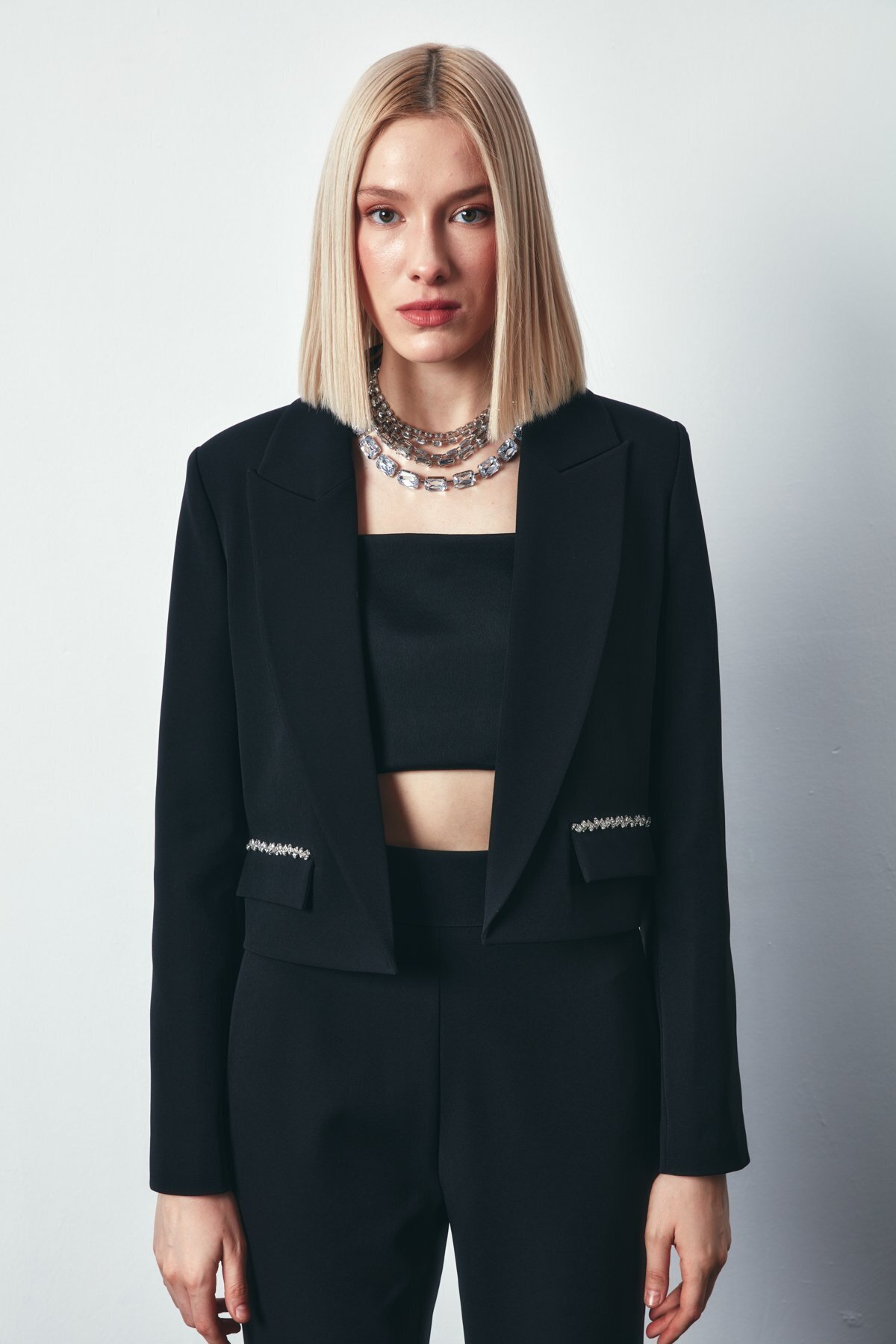 Cep Taş Detaylı Kısa Ceket - SİYAH Cep Taş Detaylı Kısa Ceket - SİYAH STN139KCE1408 42
