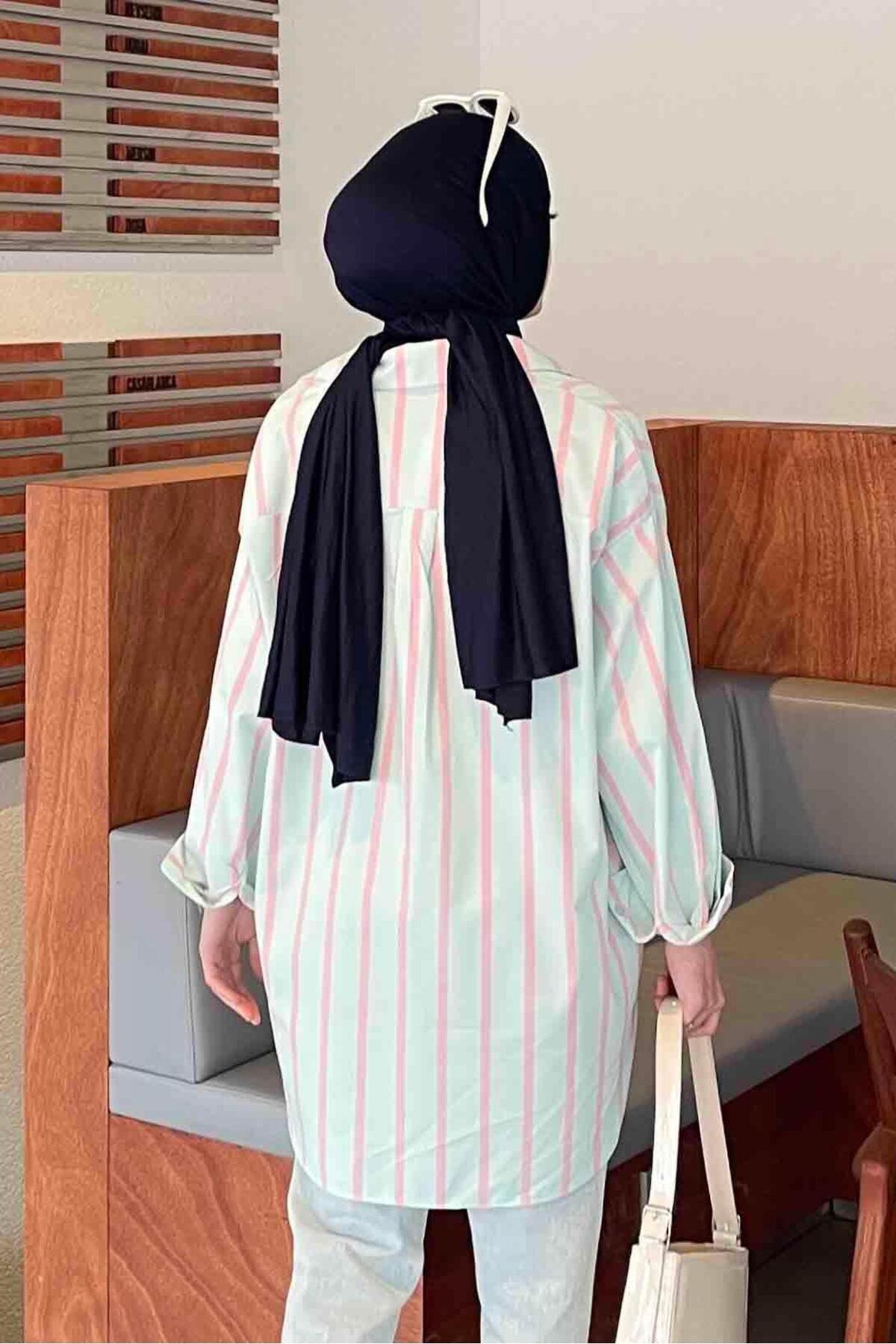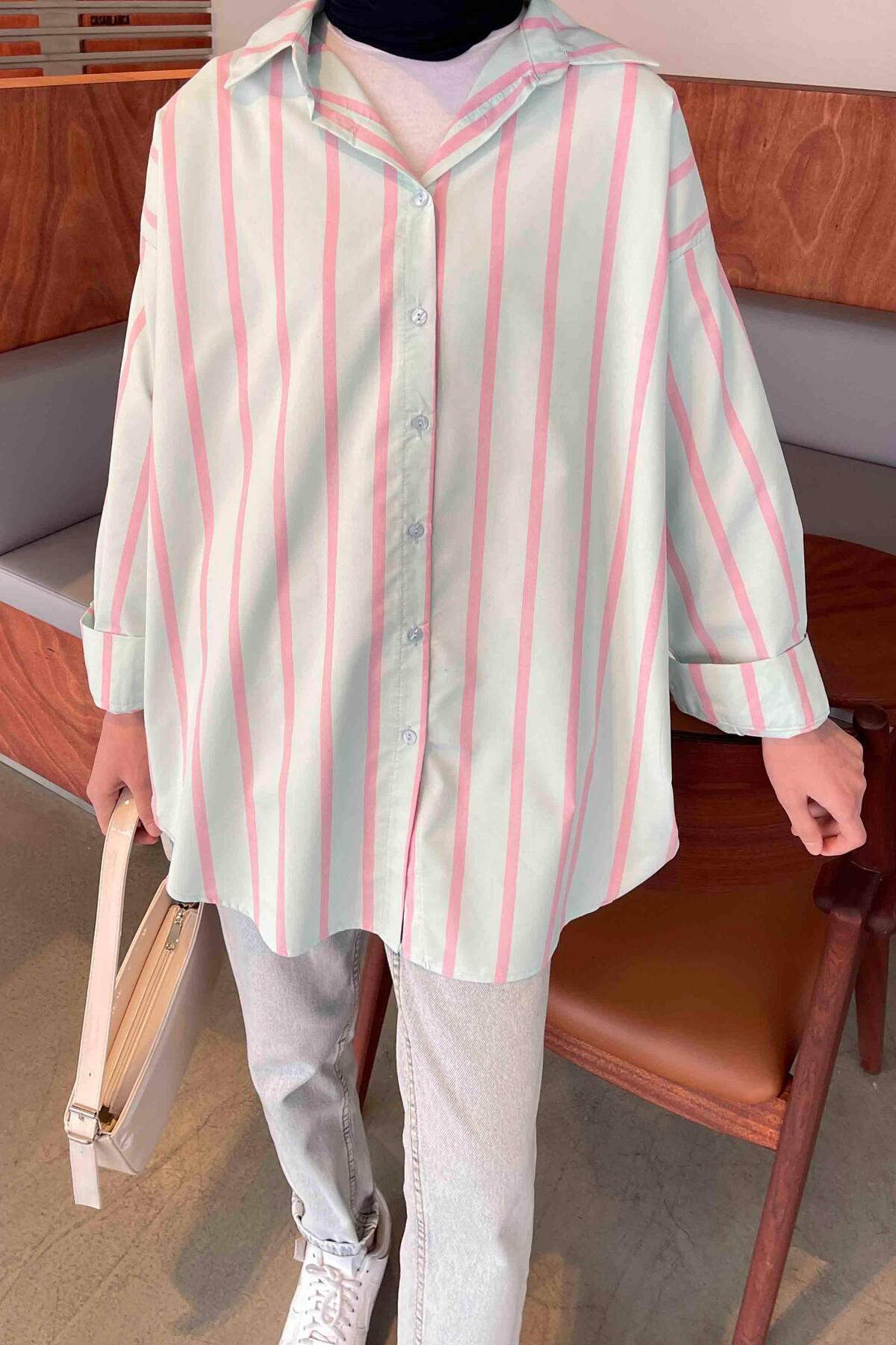 Oversize Kalın Çizgi Detaylı Gömlek Su Yeşili Oversize Kalın Çizgi Detaylı Gömlek Su Yeşili CZG391 Standart
