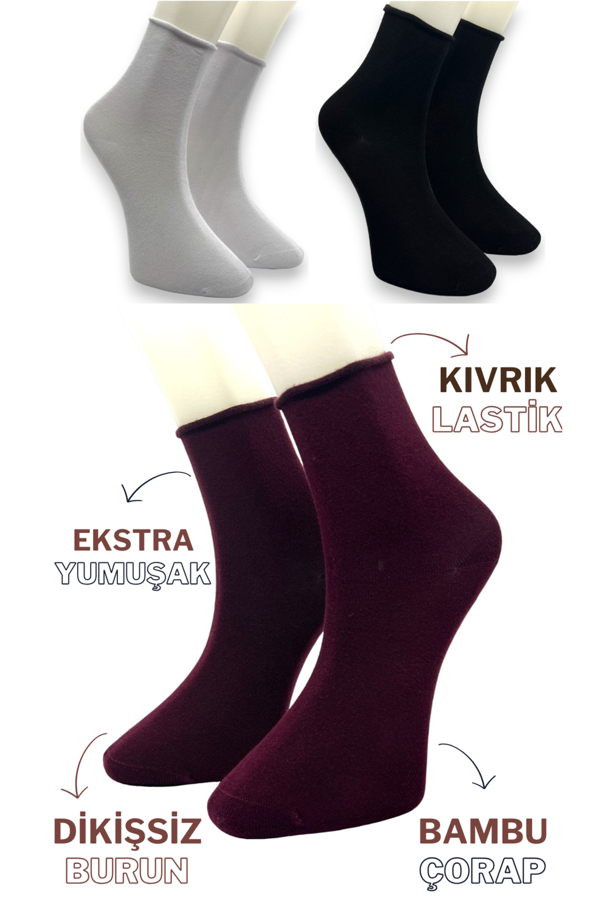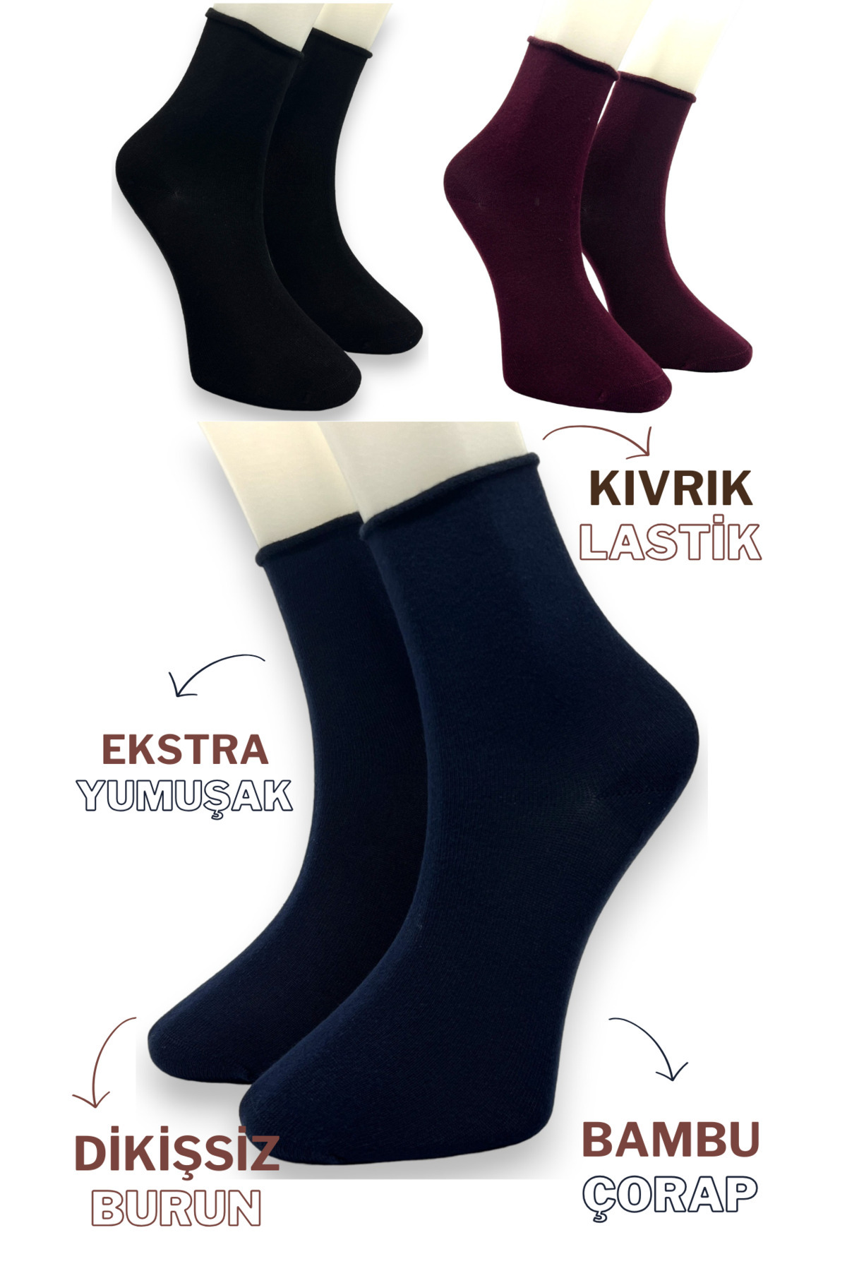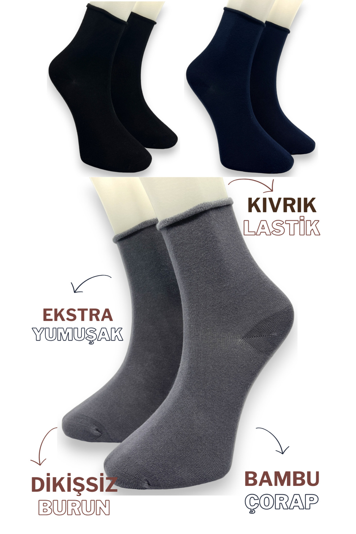Premium 3 Çift Siyah Bambu Kadın Lastiksiz Roll Top Soket Dikişsiz Çorap/ız Bırakmaz/sıkmayan Çorap Premium 3 Çift Siyah Bambu Kadın Lastiksiz Roll Top Soket Dikişsiz Çorap/ız Bırakmaz/sıkmayan Çorap CİHO3047WB 36 - 40