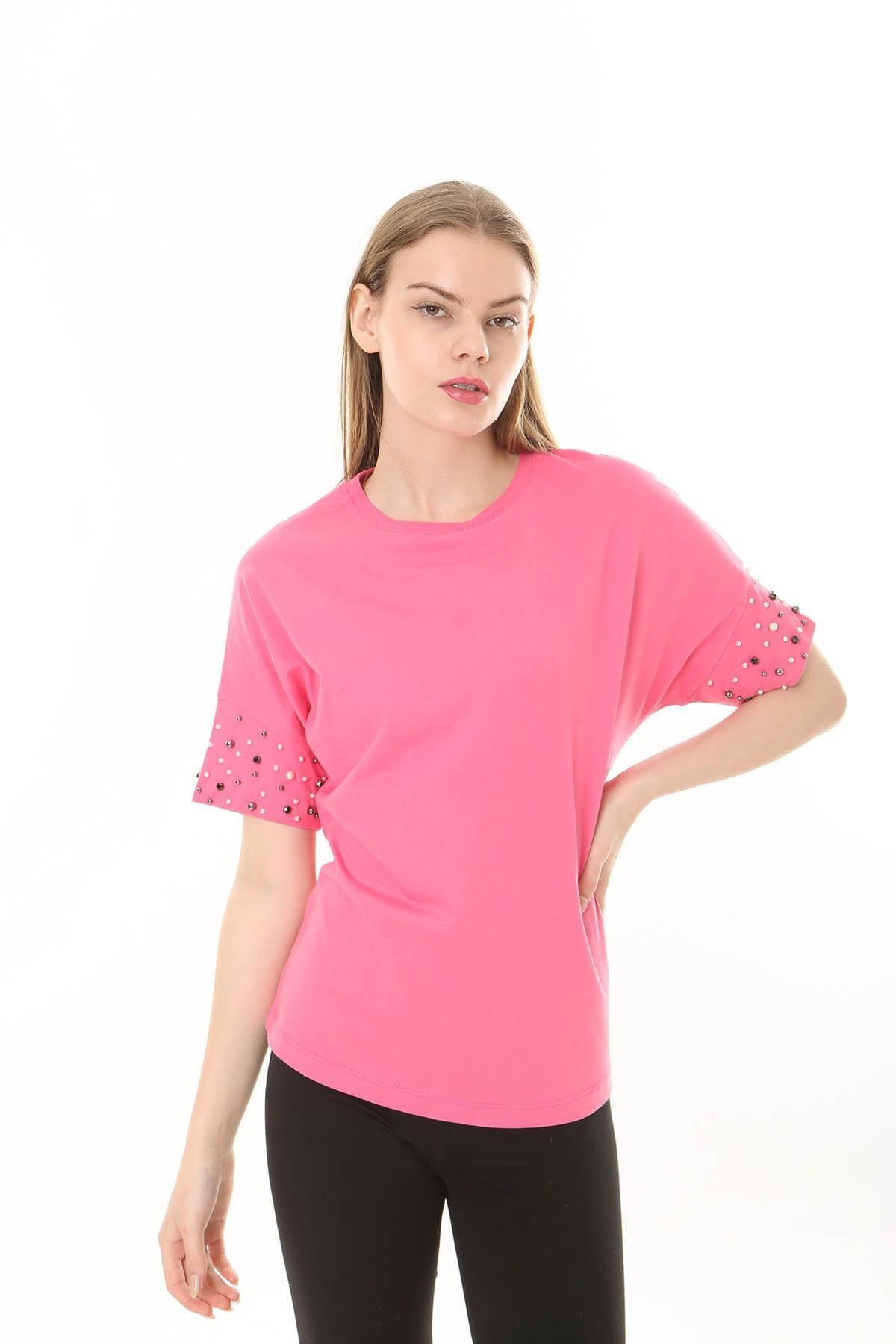 Kadın Metraj Baskılı Yanları Büzgülü T-shirt Kadın Metraj Baskılı Yanları Büzgülü T-shirt ESP-E00117 XL