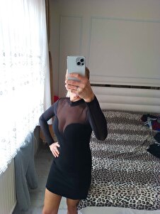 Transparan Detaylı Mini Elbise Siyah Transparan Detaylı Mini Elbise Siyah 24Y31986 L