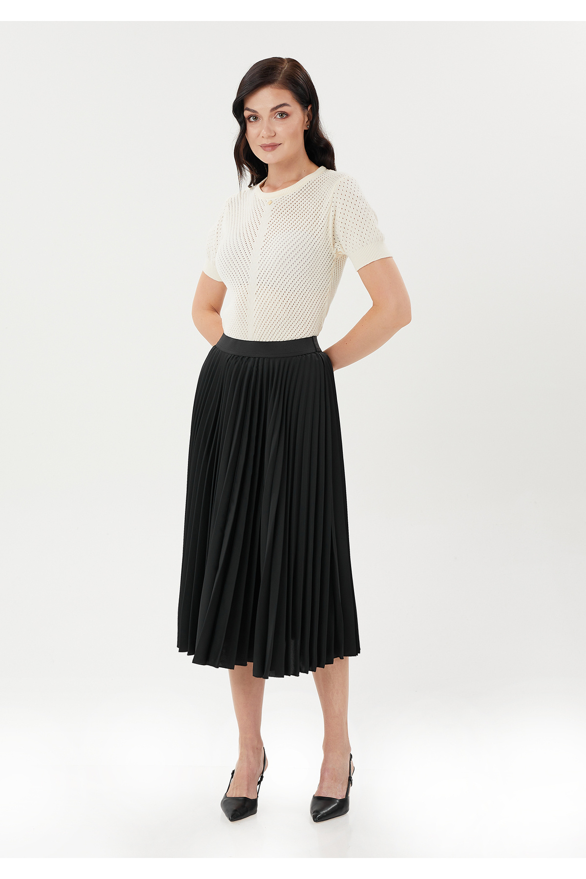 Hardal Midi Boy Beli Lastikli Yüksek Bel Plise Etek Hardal Midi Boy Beli Lastikli Yüksek Bel Plise Etek 200732 2XL