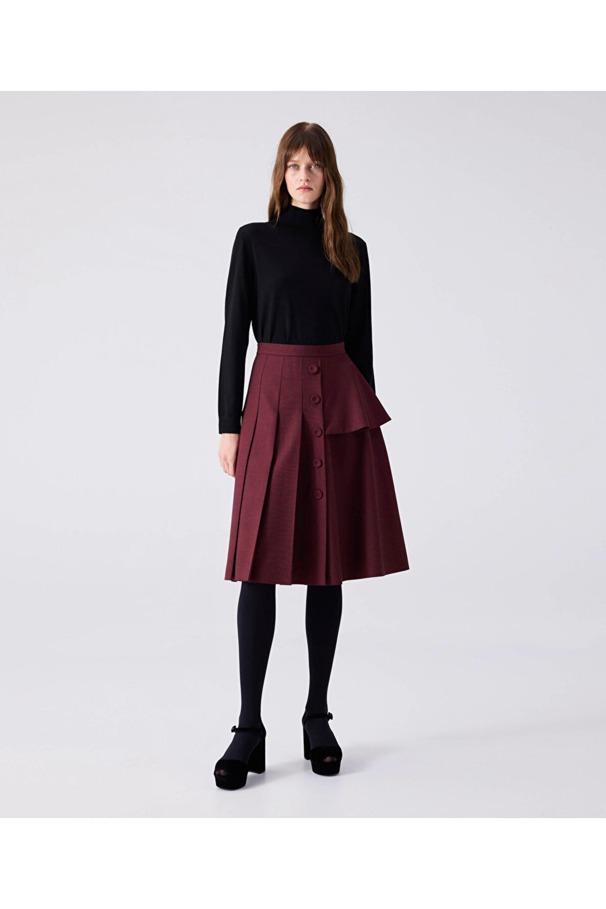 Bej Midi Boy Beli Lastikli Yüksek Bel Plise Etek Bej Midi Boy Beli Lastikli Yüksek Bel Plise Etek 200732 2XL