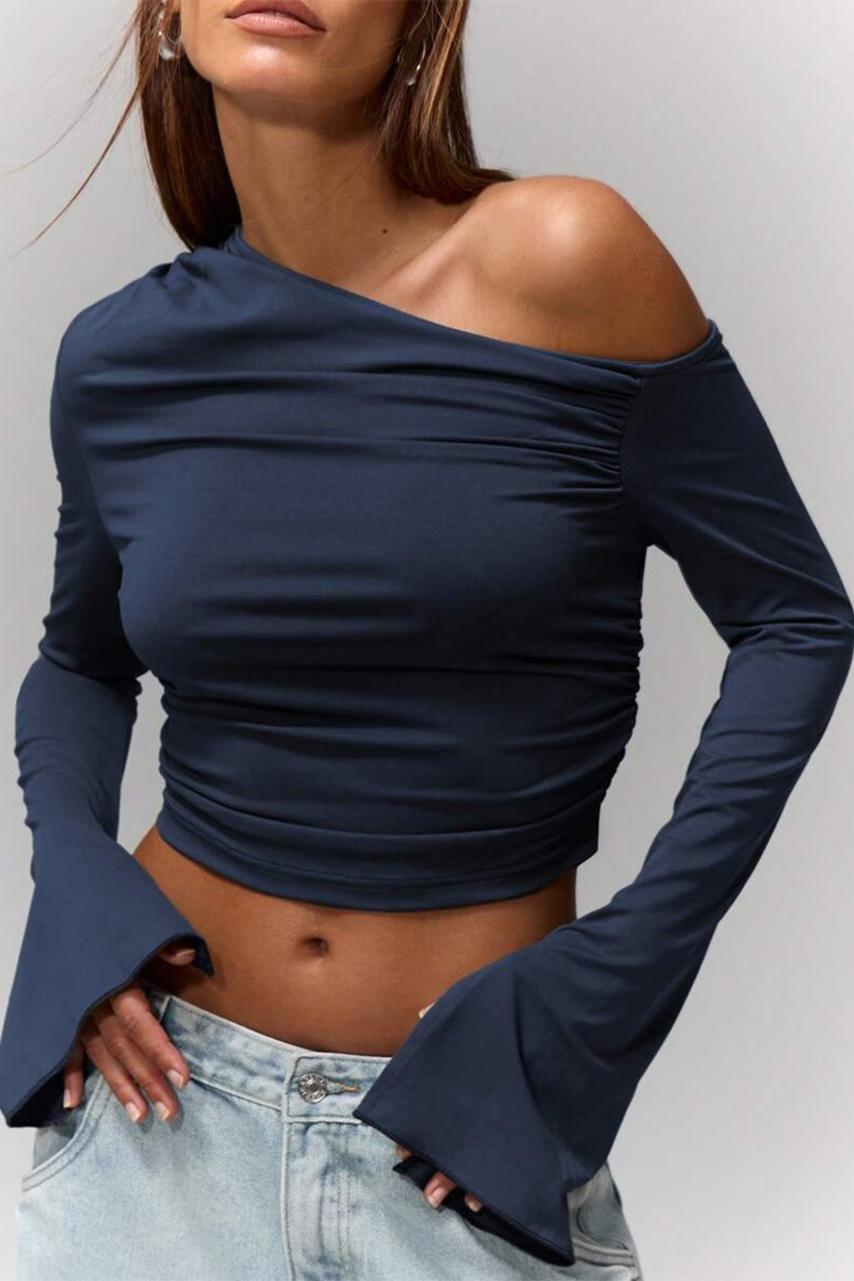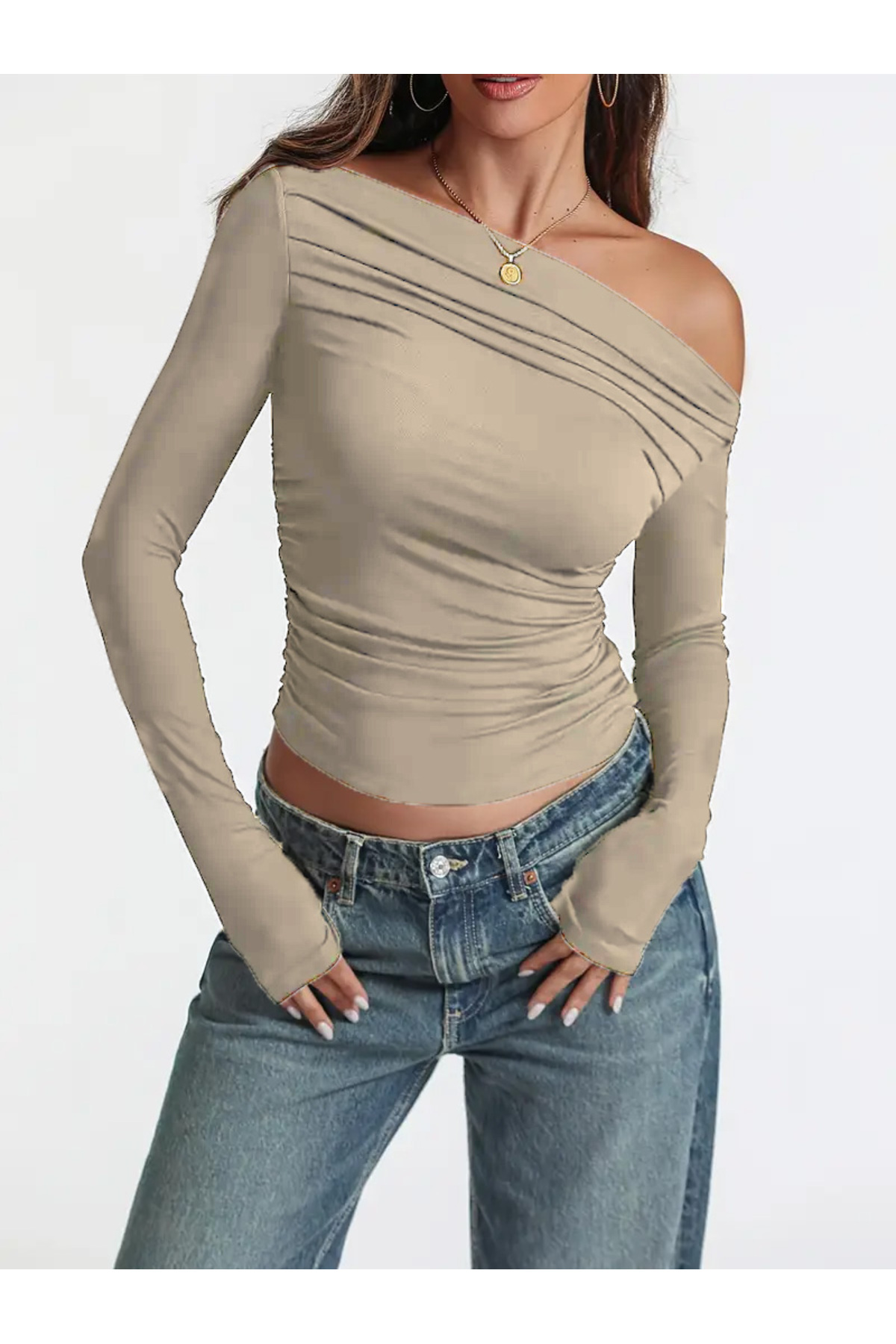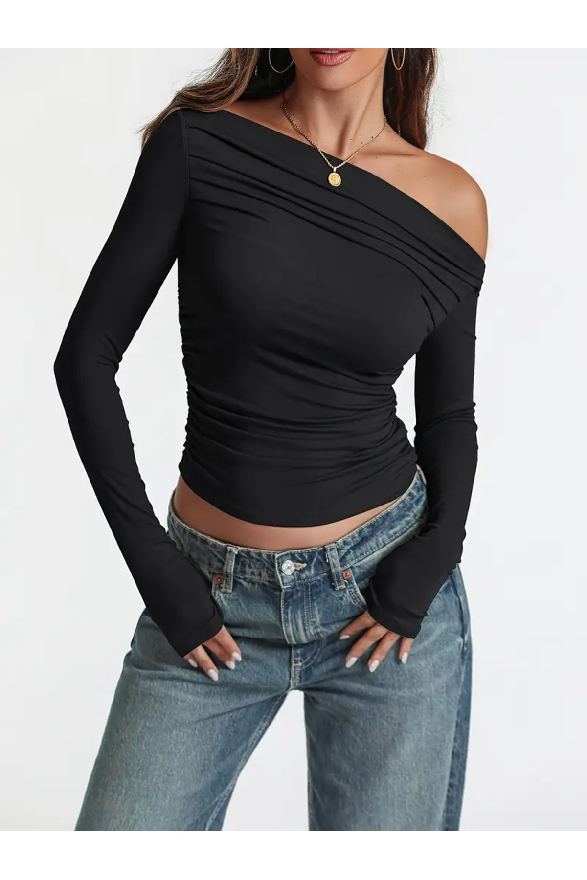 Omzu Pile Ve Büzgülü Uzun Kollu Esnek Bluz Omzu Pile Ve Büzgülü Uzun Kollu Esnek Bluz 3019E L