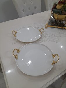 Kulplu Lüks Sunum Tabağı 26 cm,Beyaz Sunum Tabağı Kulplu Lüks Sunum Tabağı 26 cm,Beyaz Sunum Tabağı Tabak7 تک سایز